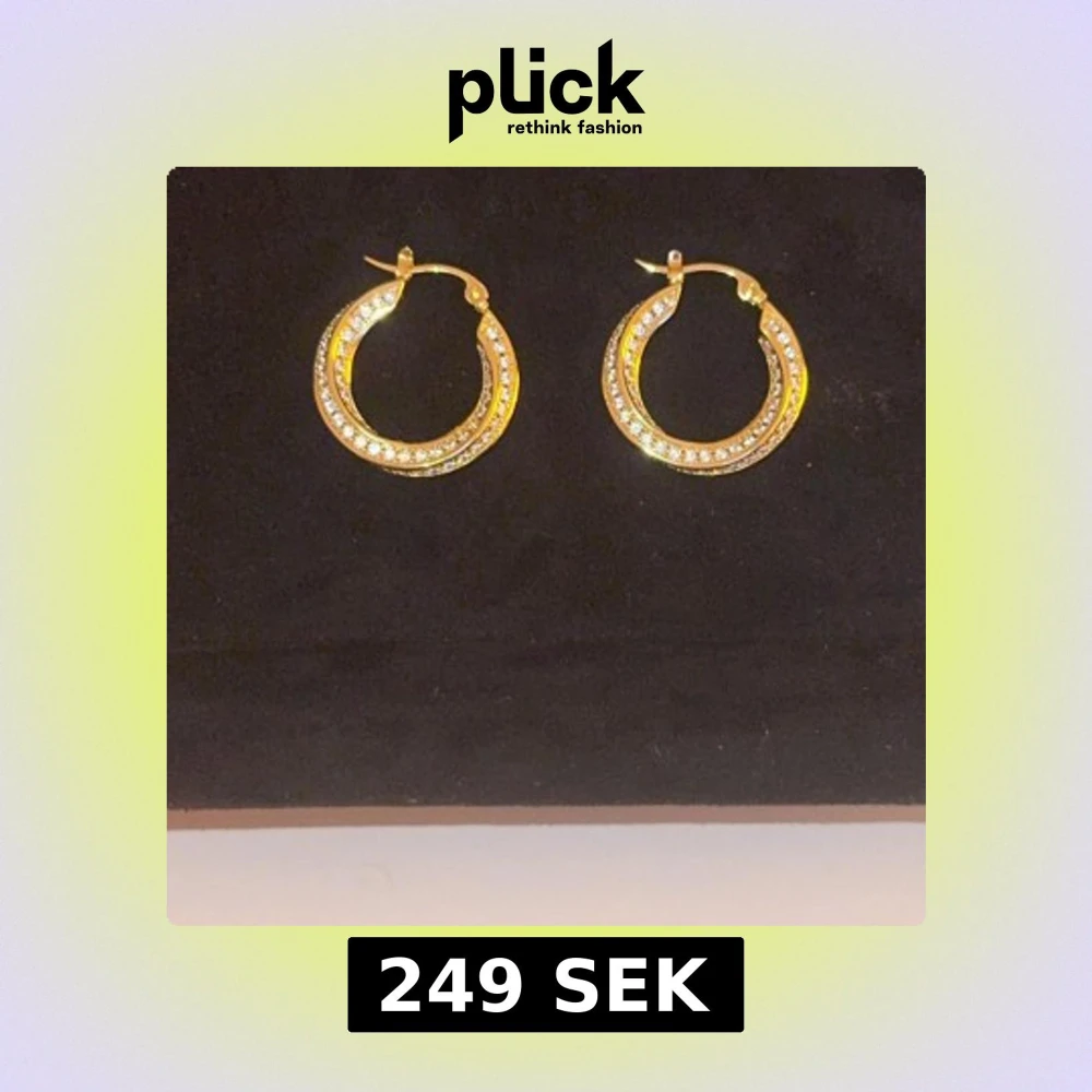 Snygga guldiga hoop-örhängen dekorerade med glittrande stenar. Perfekta för att ge en touch av glamour till din outfit. Lätta att bära och passar till många olika stilar.