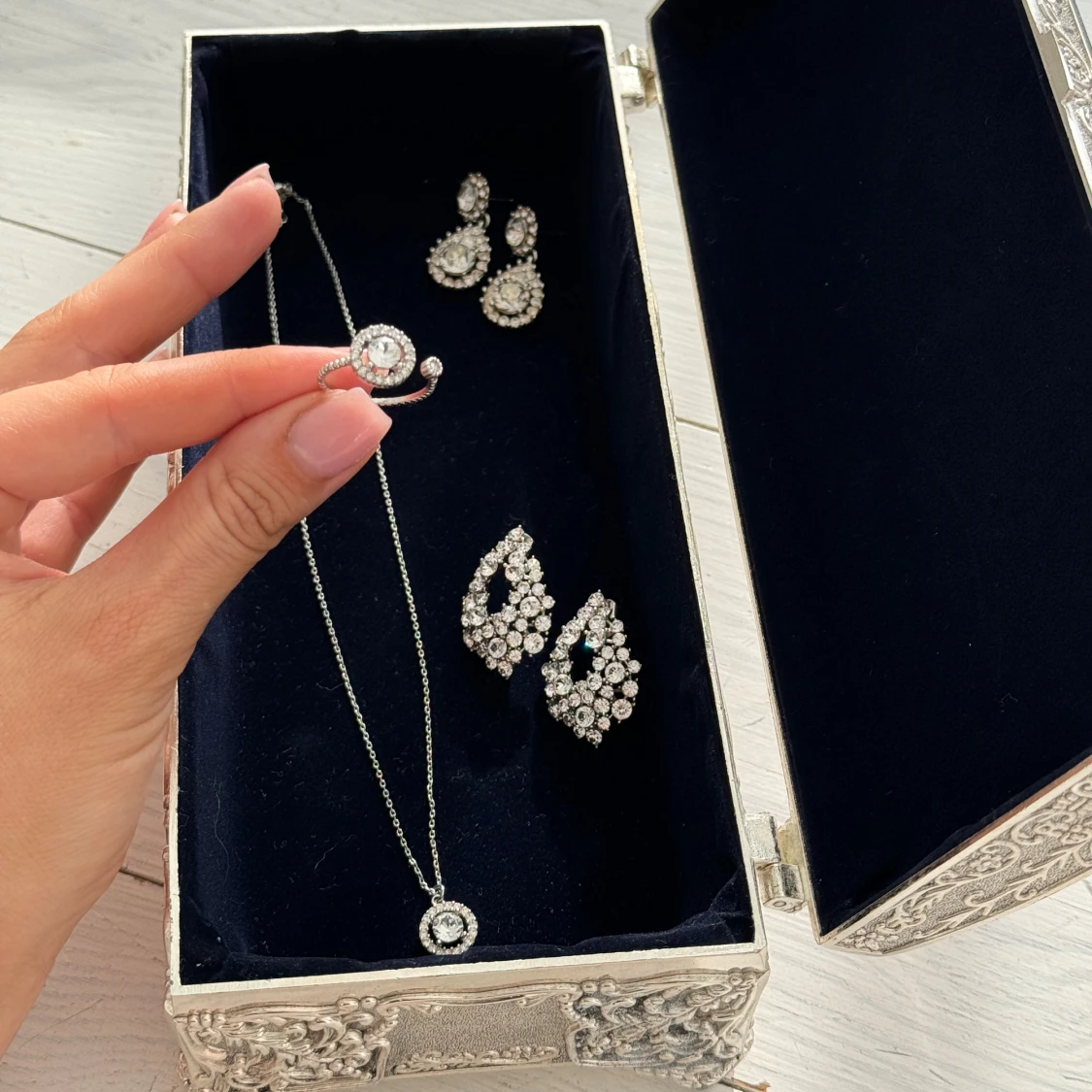 Underbara smycken från Lily And Rose som används alldeles för sällan och letar efter ny ägare✨ Allt i toppskick🫶🏼 Sofia earrings crystal Alice earrings crystal Miranda ring crystal Miss Miranda necklace crystal Nypris 1899:-