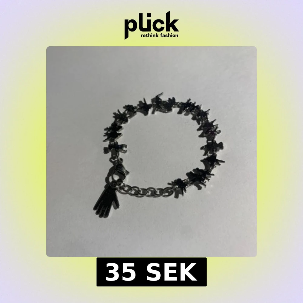 Unikt armband i silverfärg med länkar och en cool handformad berlock. Perfekt accessoar för dig som gillar detaljer och vill sticka ut lite extra. Armbandet är ganska litet. Kommer tyvärr inte ihpg vart jag köpte det.