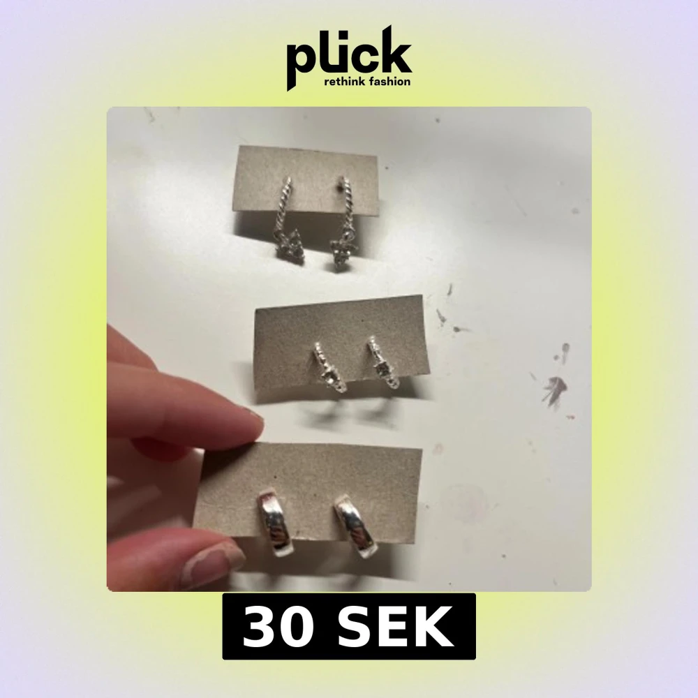 Säljer ett 3-pack örhängen i silverfärg. Ett par är tvinnade hoops med gnistrande hjärtan, ett par är små hoops med stenar och ett par är klassiska släta hoops. Perfekta för att mixa och matcha till din stil. I rostfritt stål