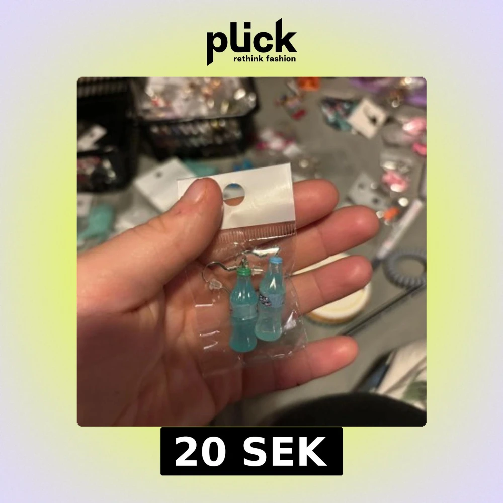Säljer ett par unika örhängen formade som små blå läskflaskor. Perfekta för dig som vill sticka ut med roliga accessoarer! Kommer i förpackning.