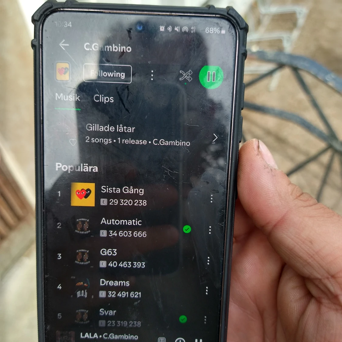 Sparsamt använd. Bra batteri.och skärm å ljud å ljuse. Inga skönhets fel
