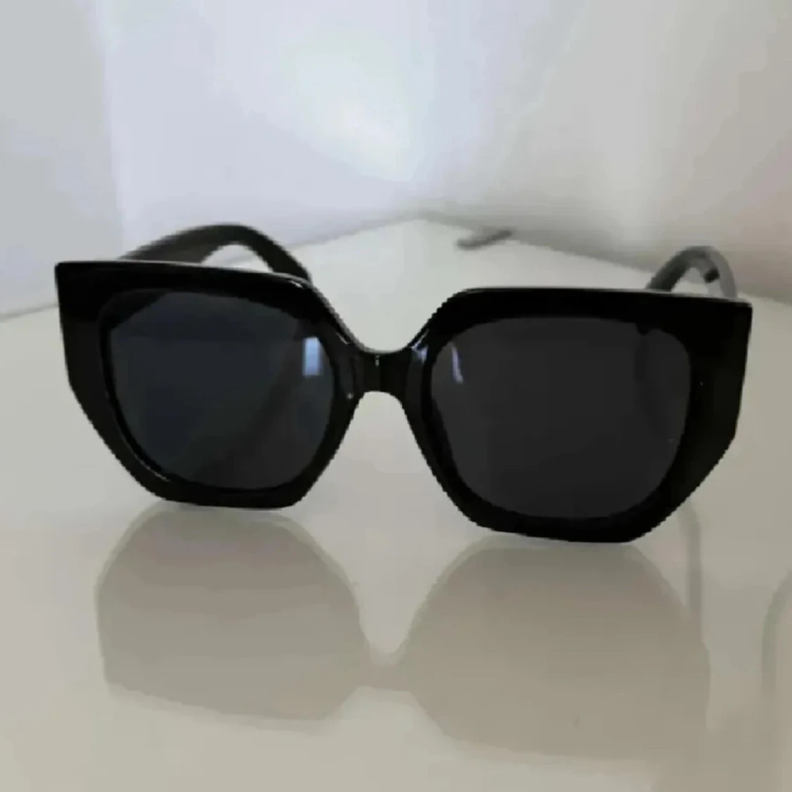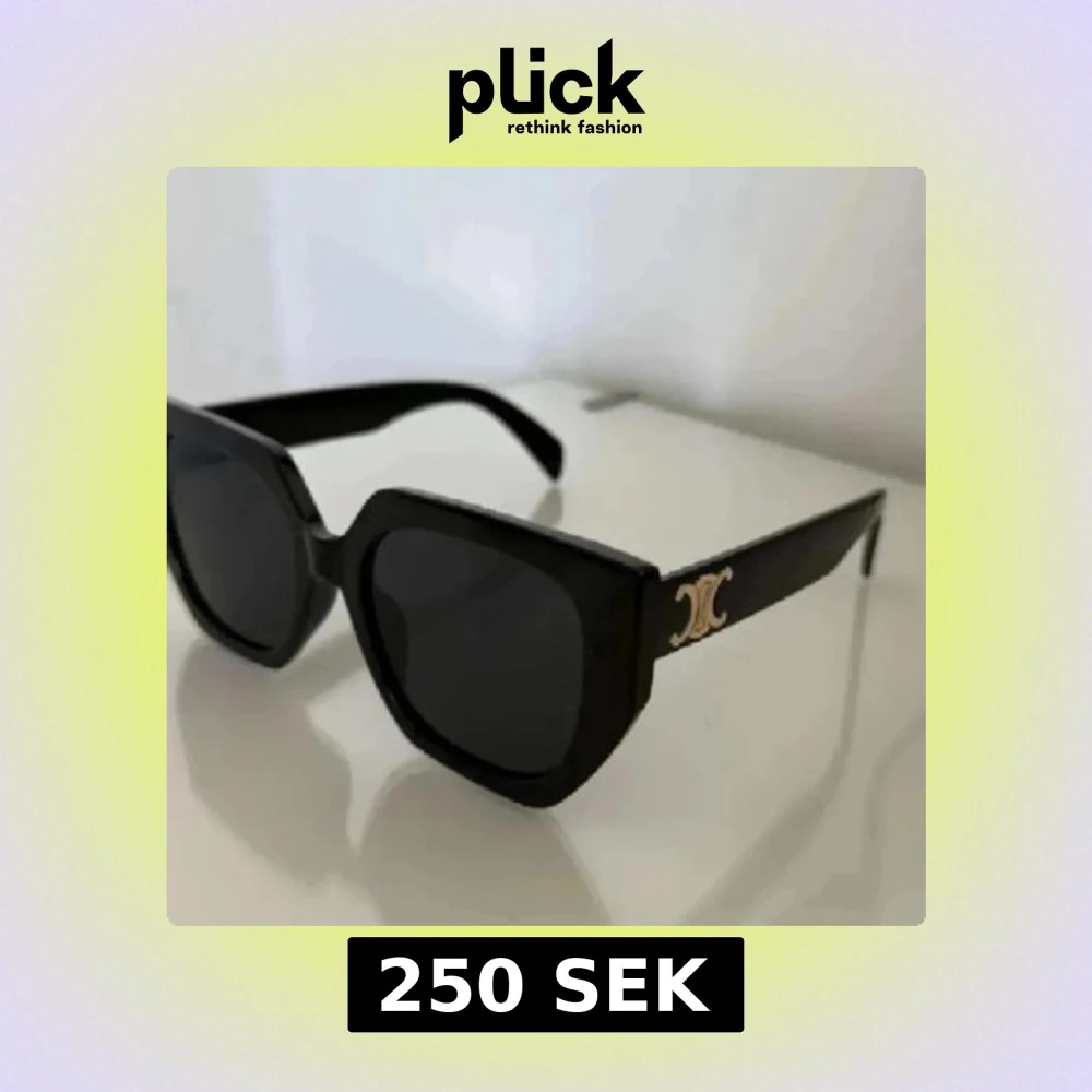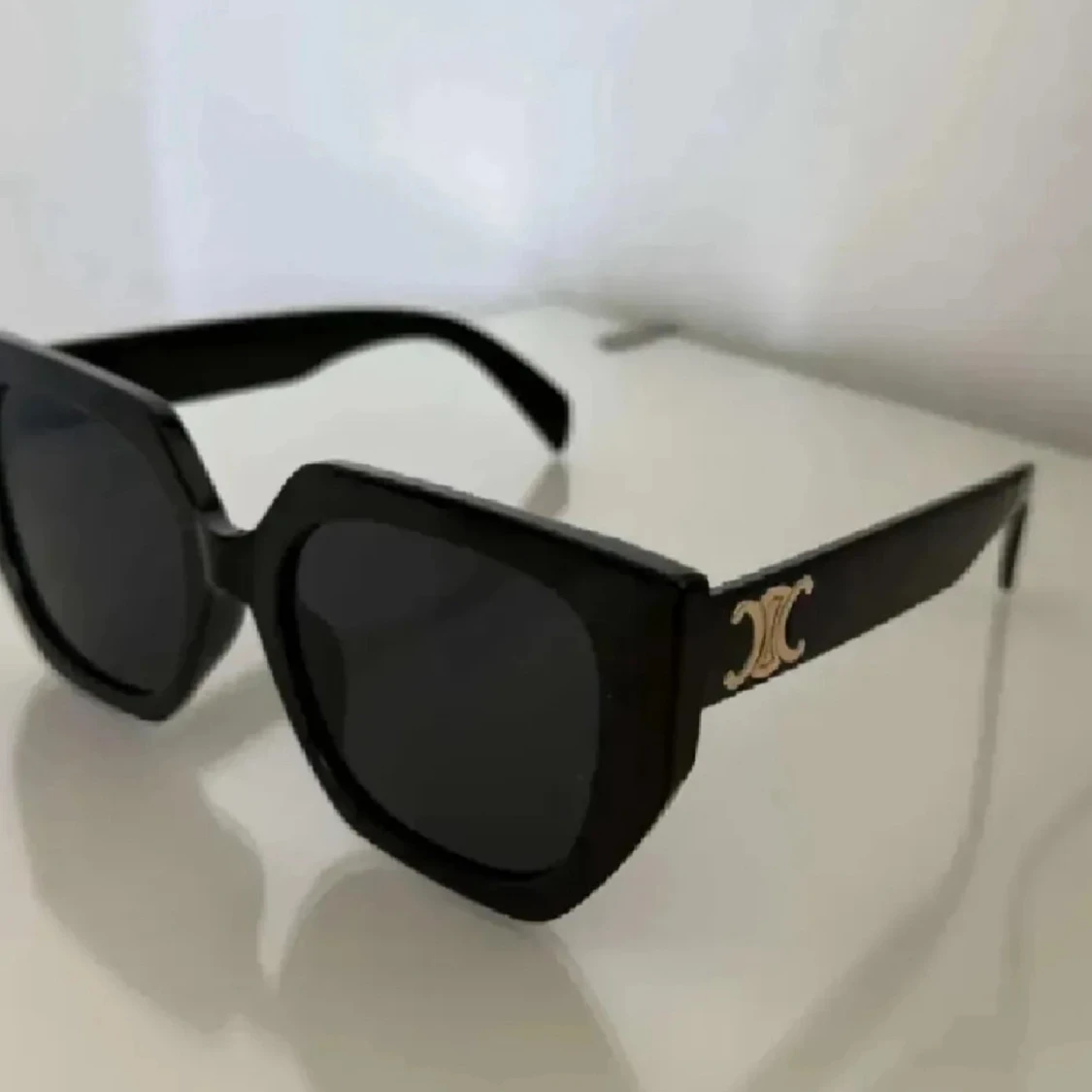 Snygga svarta solglasögon från Celine med markerad, kantig båge och mörka glas. På skalmen sitter Celines ikoniska guldiga logga som ger en lyxig touch.💕