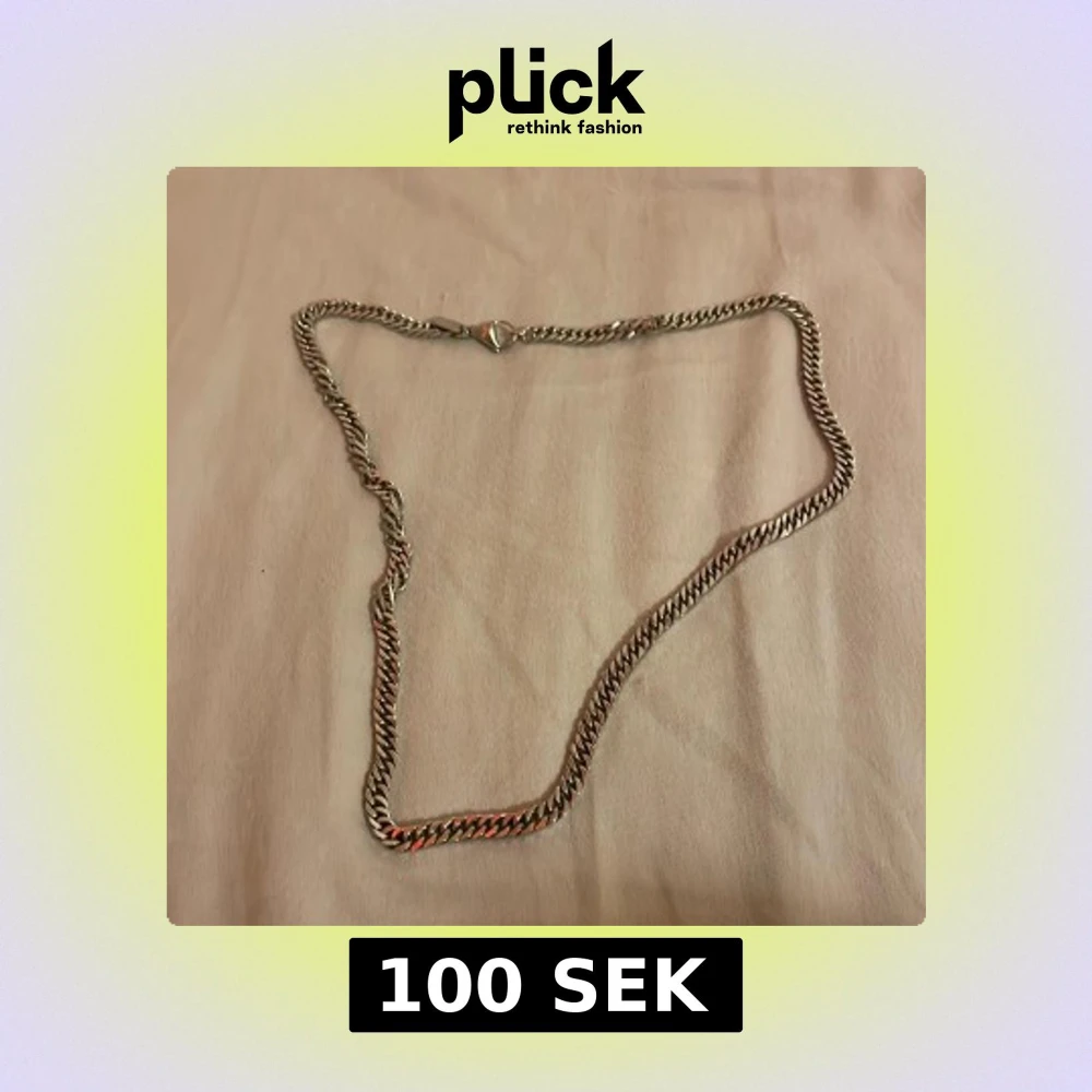 Säljer ett stilrent halsband i silverfärgad metall med klassisk kedjedesign. Halsbandet har ett smidigt karbinlås och passar perfekt om du gillar minimalistiska accessoarer med lite edge. Längden är lagom för att synas men ändå vara diskret. Köpt för 500kr på guldfynd.
