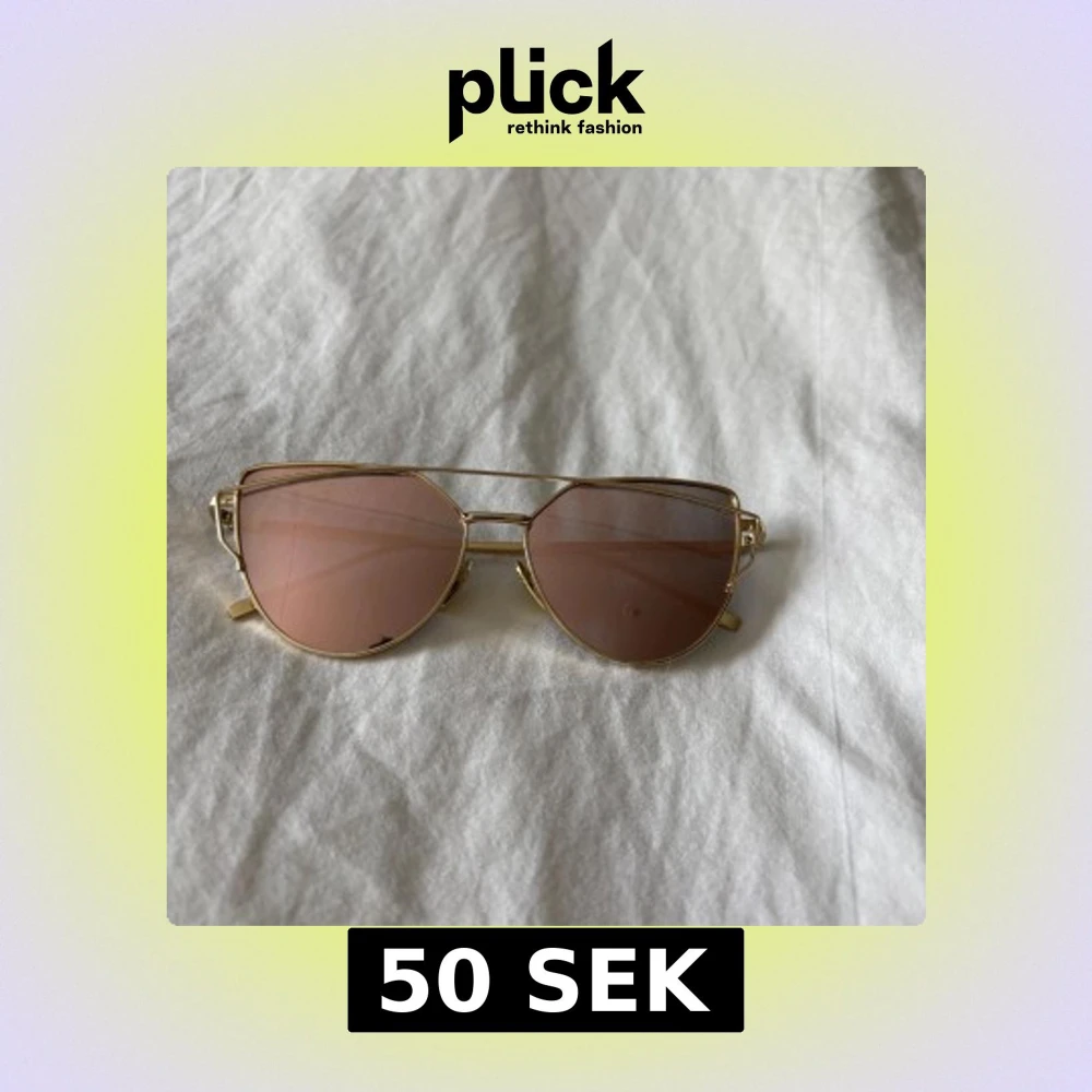 Snygga solglasögon med guldiga metallbågar och spegelglas i rosa ton. Unik design med dubbla bågar upptill och tunna skalmar. Perfekta för dig som vill sticka ut med en trendig accessoar i sommar.