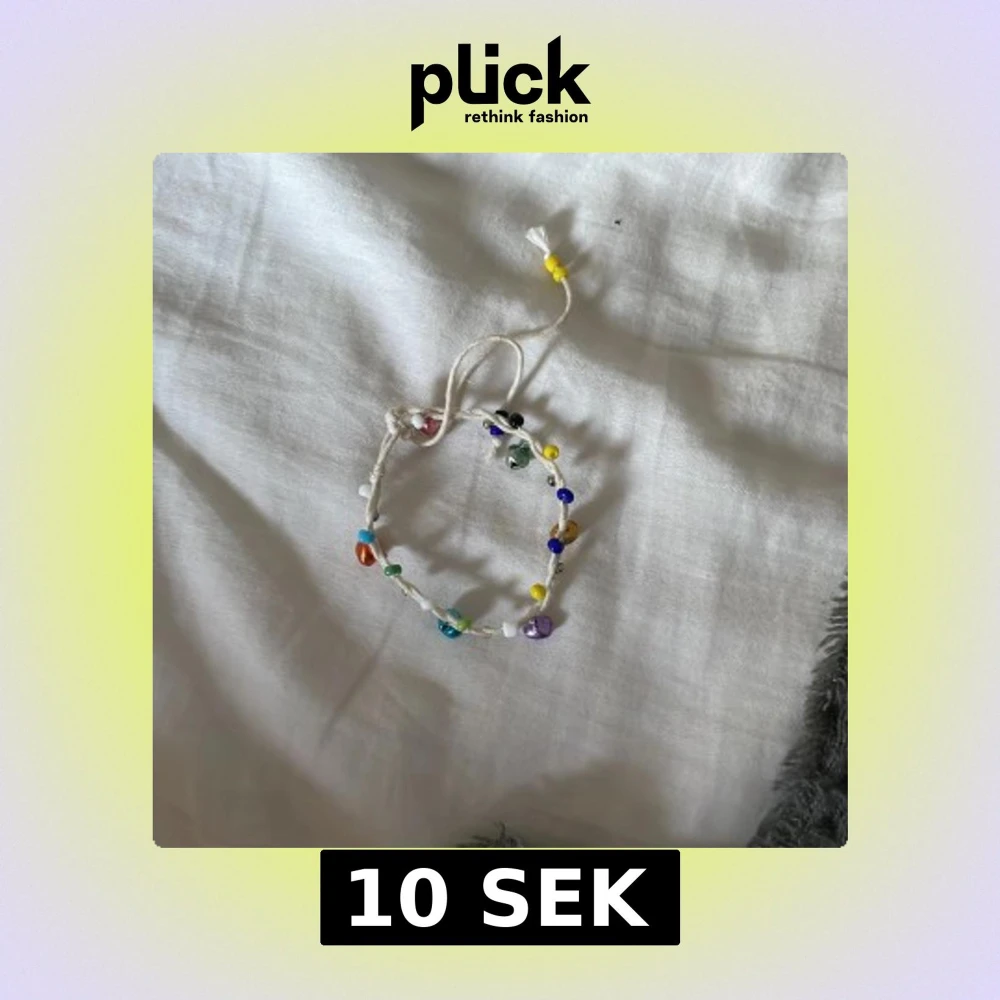 Ett handgjort armband med vit snodd och massor av färgglada pärlor i olika former och nyanser. Armbandet har justerbar knytning och ger en lekfull och personlig touch till din stil.