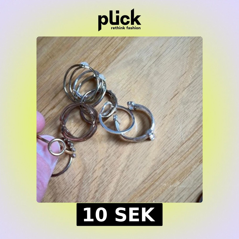 En samling av stilrena ringar i olika designer. Vissa ringar har små dekorativa detaljer som pärlor och knutar. Perfekt för att mixa och matcha för en personlig stil. Inget äkta utan bijouterier