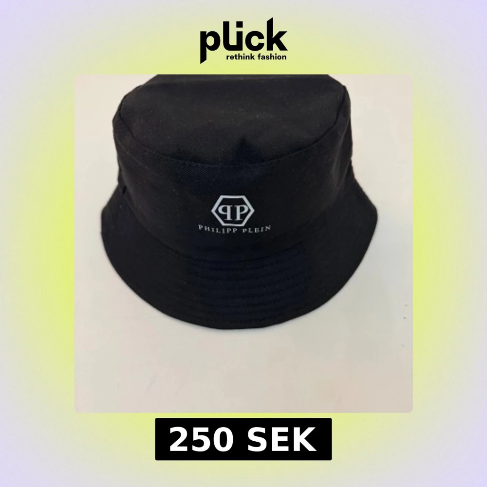 Stilren svart bucket hat från Philipp Plein med vit logotyp framtill. Klassisk form med mjuk, nedvikt brätte och sydda sömmar runt om. Perfekt accessoar för en trendig look.