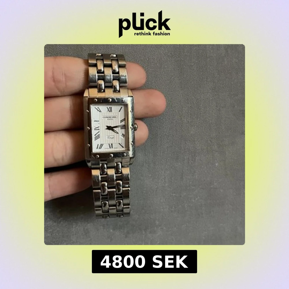 Snygg Raymond Weil Tango klocka med rektangulärt ur och länkarmband i silverfärgat rostfritt stål. Urtavlan är vit med romerska siffror och datumvisning. Saffirglas och Swiss made. Perfekt för dig som gillar klassisk och stilren design.