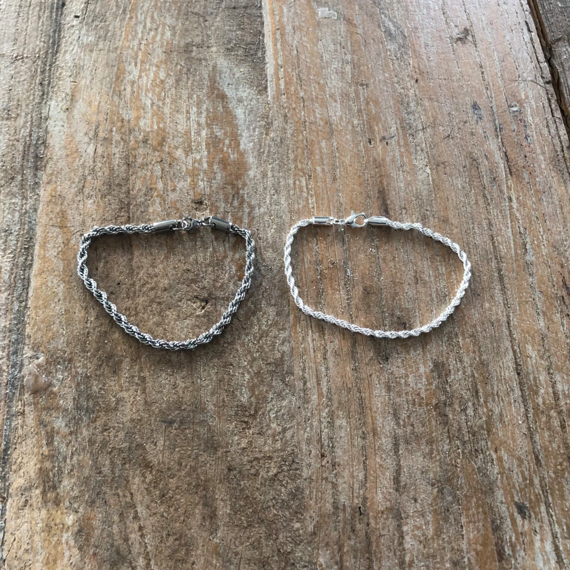 Säljer två stilrena flätade armband i silver. Perfekta för att lägga till en elegant touch till din outfit. Armbanden har en klassisk design med säker låsning. Dom båda armbanden är 20 cm långa