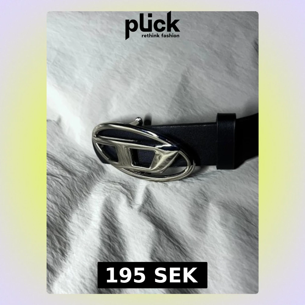 Svart skärp (105x2.7 cm) med silver D-spänne (8x3,9 cm). Ren och tidslös design