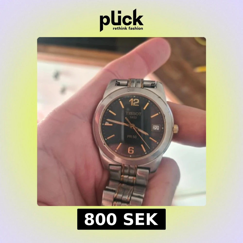 Snygg Tissot PR 50 herrklocka med svart urtavla och datumvisning. Klockan har en stilren design med silverfärgad boett och armband i metall. Perfekt för den som söker en klassisk och tidlös accessoar.