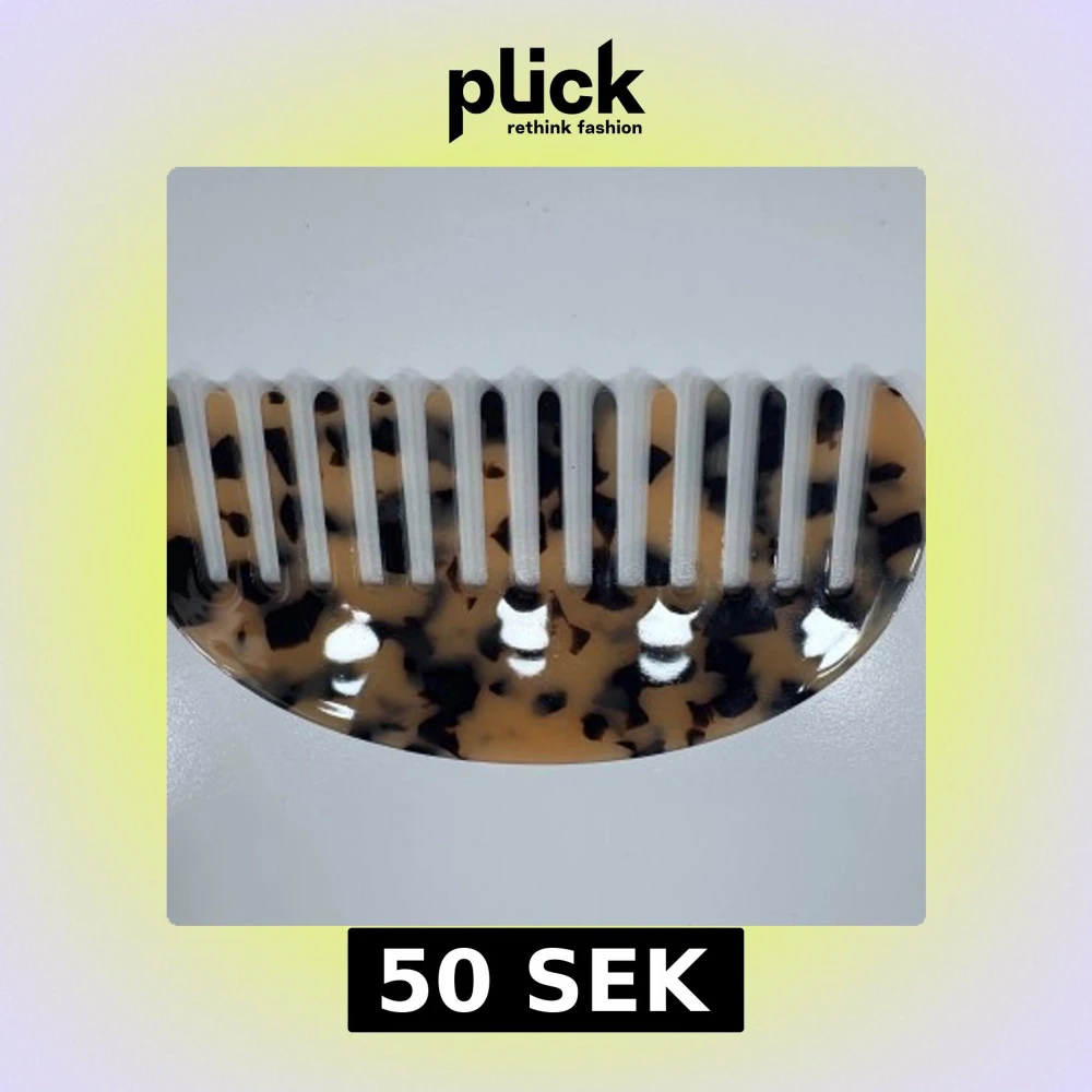 Snygg hårkam i klassiskt sköldpaddsmönster med beige och svarta toner. Perfekt accessoar för att styla håret och ge en trendig look. Halvmåneformad design som är lätt att använda och passar de flesta hårtyper.