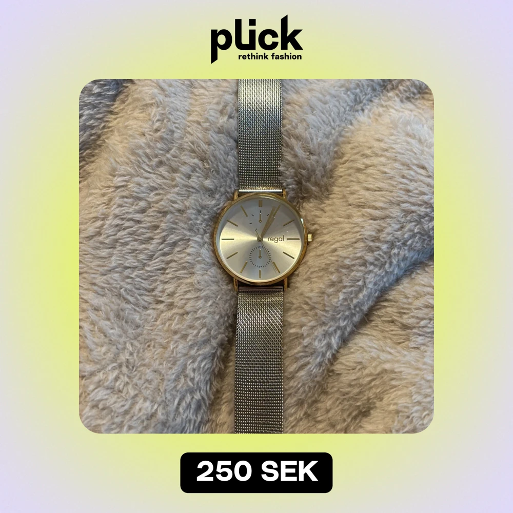 Snygg och stilren klocka från Regal med en silverfärgad urtavla och guldfärgad boett. Använd fåtal gånger 🕒✨