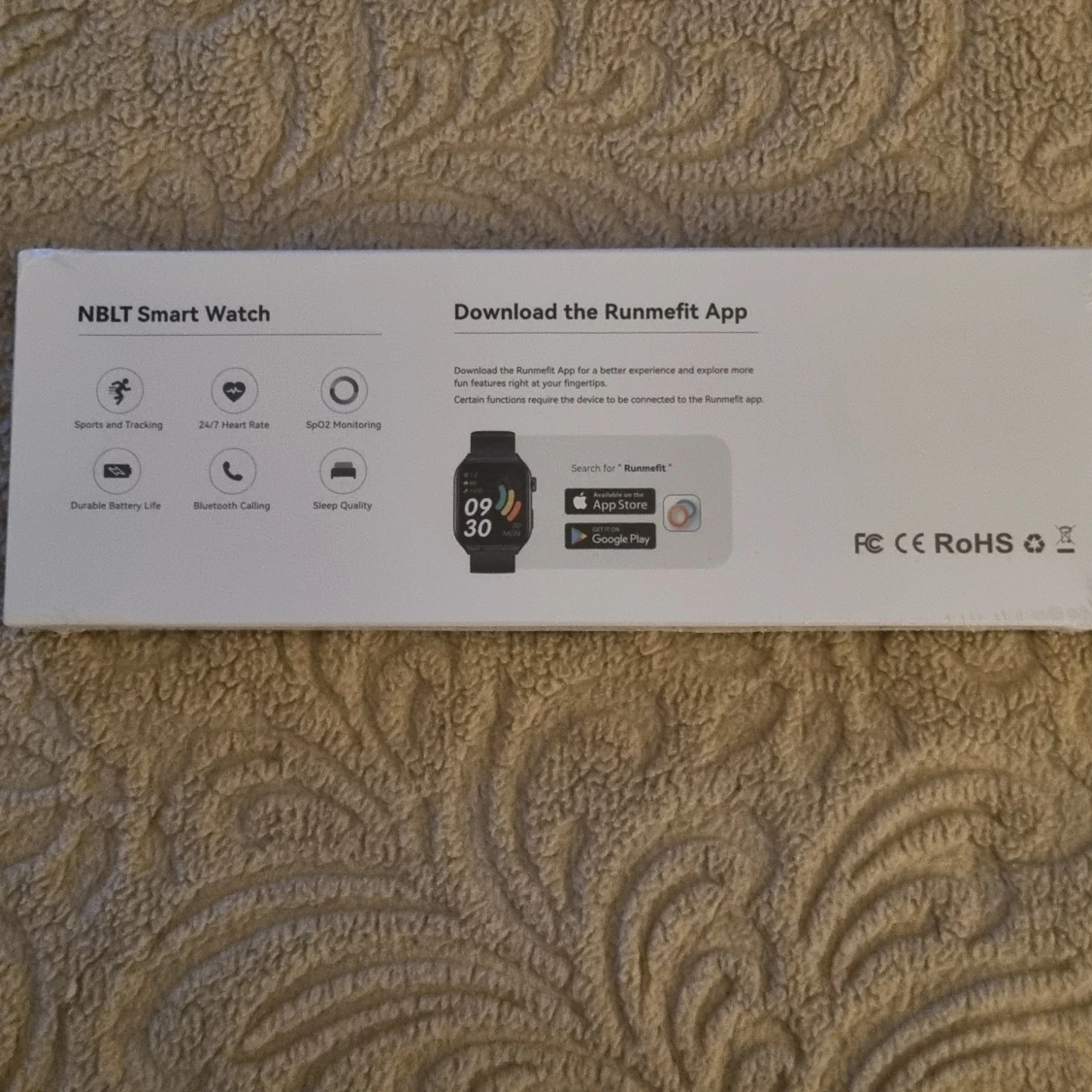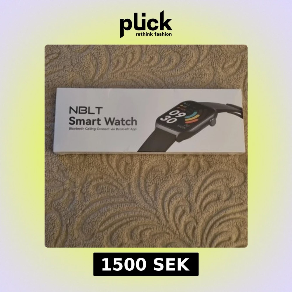 Säljer en svart smartklocka från NBLT med färgskärm och silikonarmband. Klockan har funktioner som pulsmätning, sömnövervakning, sport- och aktivitetsmätning samt Bluetooth-samtal. Kompatibel med Runmefit-appen.