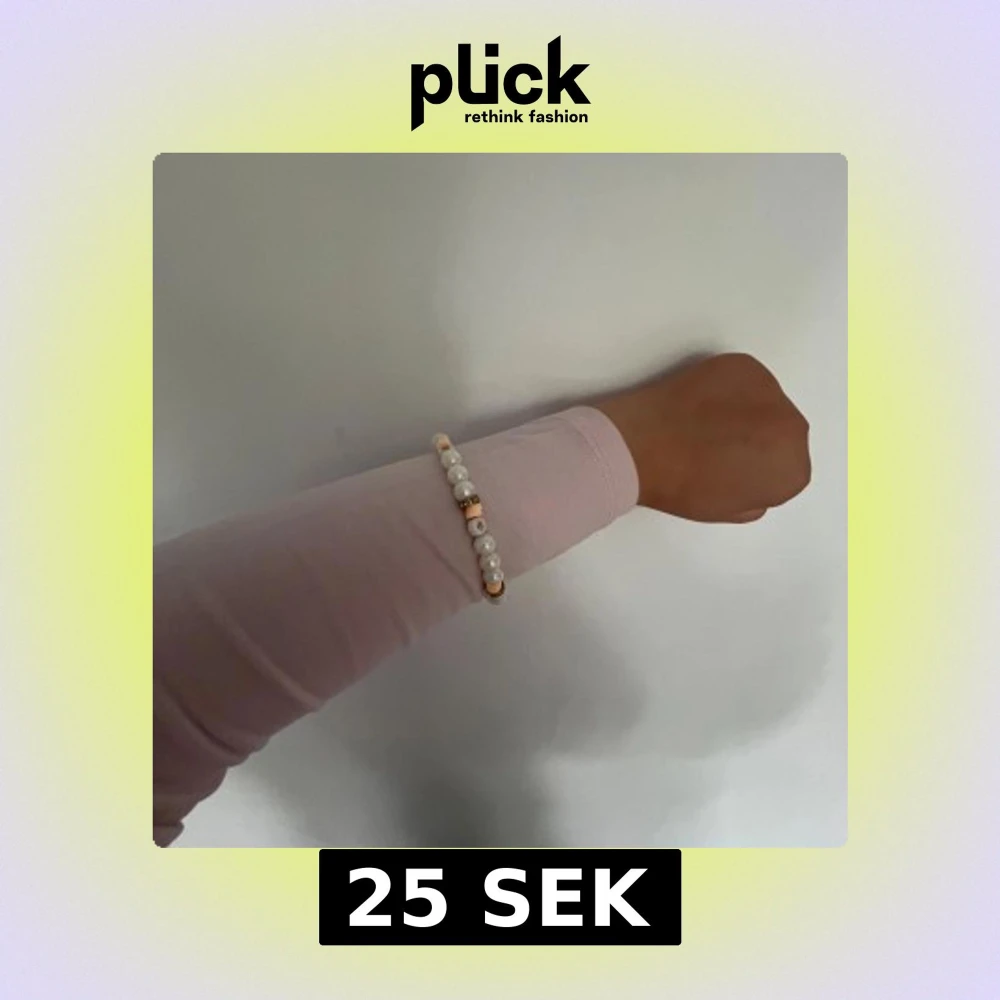 Superfint armband med vita pärlor och små guldiga och beige detaljer. Armbandet har en klassisk rund form och stängs med ett silvrigt spänne. Perfekt accessoar för att lyfta din outfit med en elegant touch. Vi har en av denna sort.