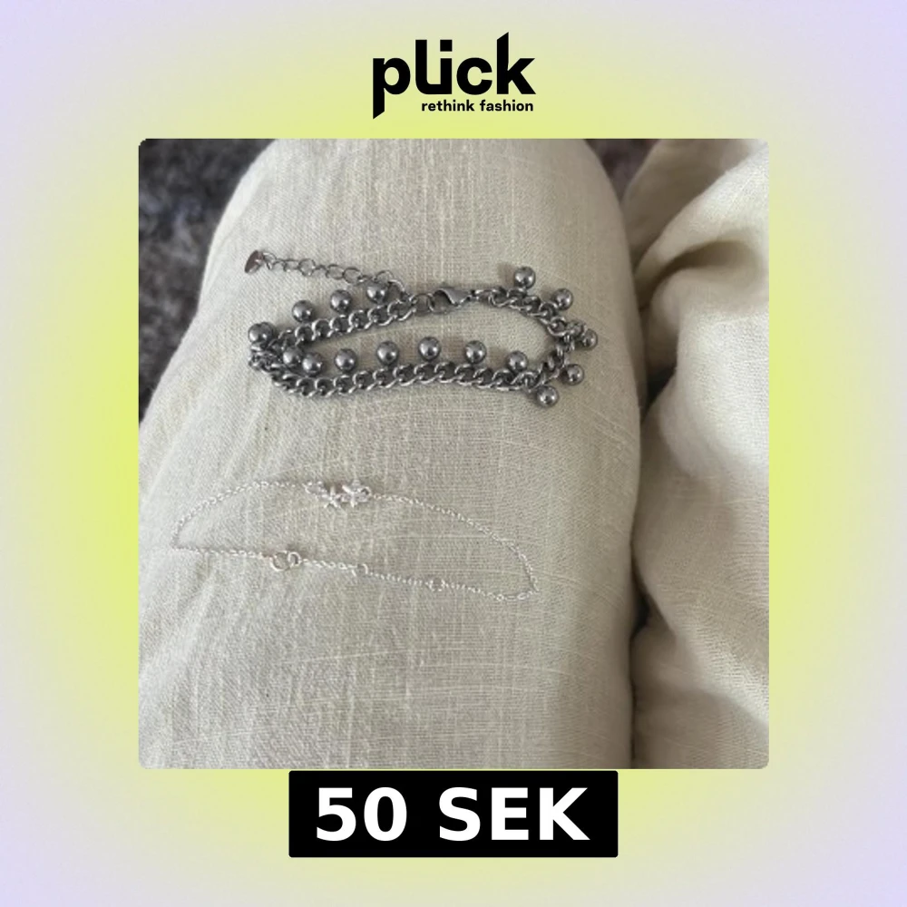 Säljer två snygga armband! Ett chunky kedjearmband med kulor och ett tunt, minimalistiskt armband med små detaljer. Båda är i silverfärg och passar perfekt för att mixa och matcha till olika outfits. Aldrig använd