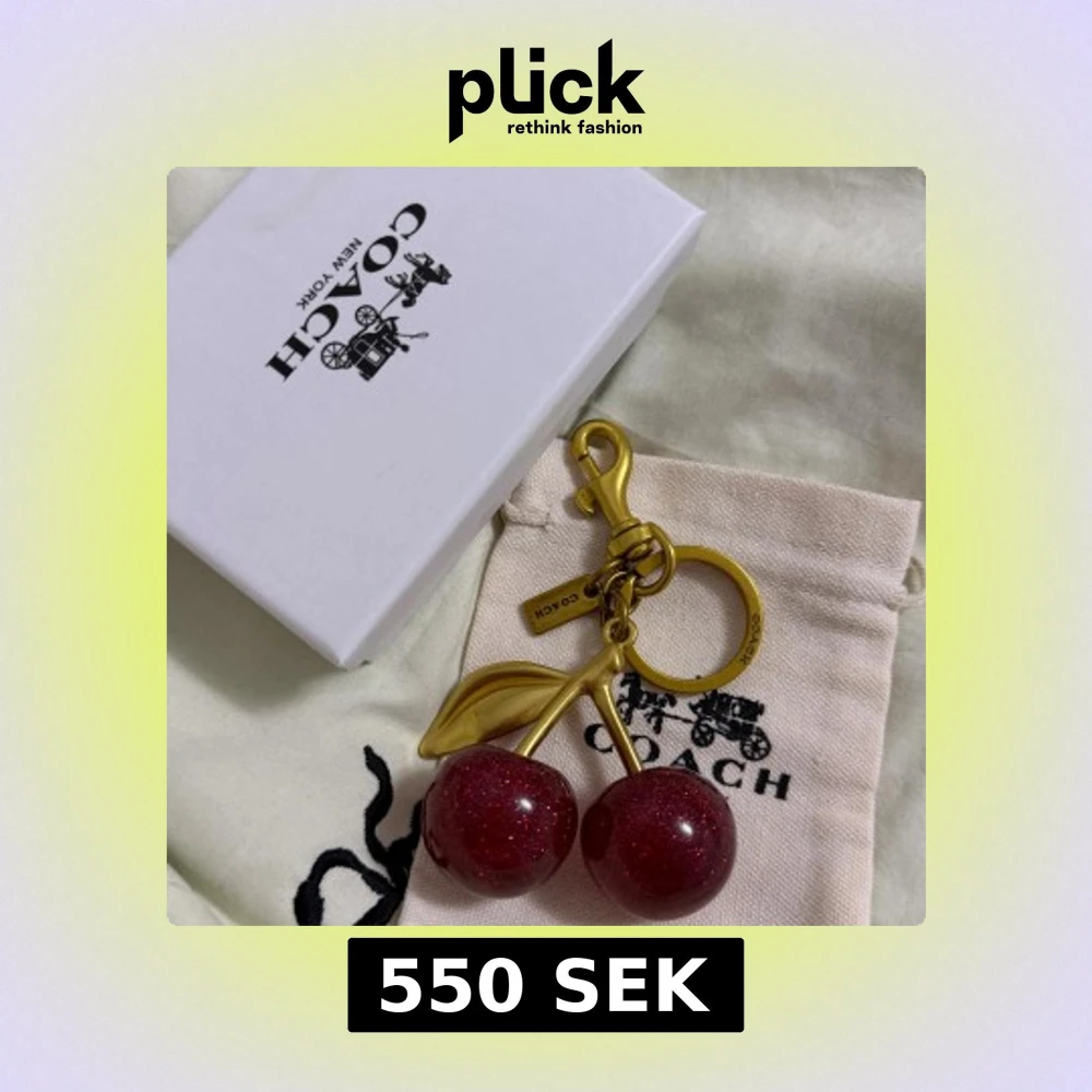 Superfin nyckelring från Coach med två glittriga körsbär i rött och detaljer i guldfärgad metall. Perfekt accessoar till väskan eller nycklarna, med Coach-logga på både ring och tag. Kommer med original ask och tygpåse.