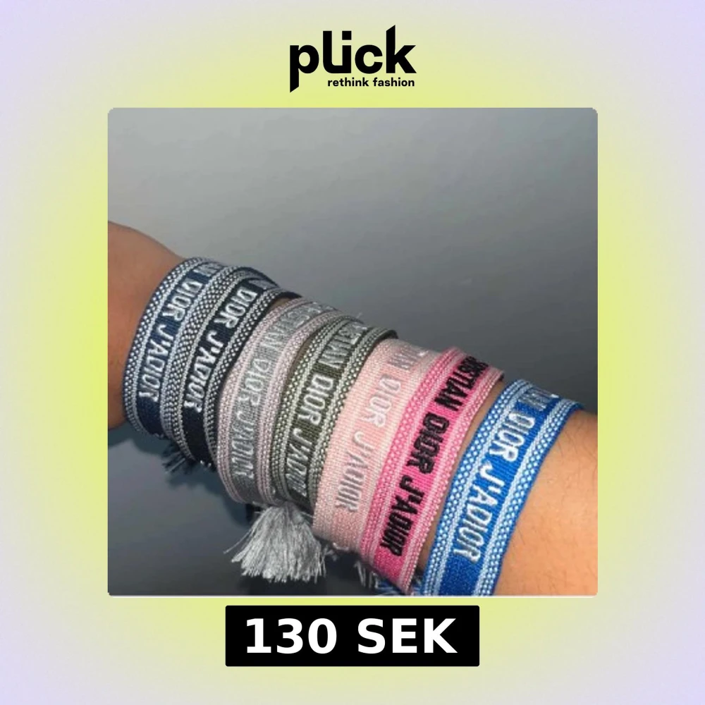 Säljer flera armband i olika färger som blå, rosa, grå, svart och olivgrön. Armbanden är vävda i textil med broderad logga och har tofsar i ändarna. Perfekt accessoar för att lyfta din outfit med en lyxig touch.