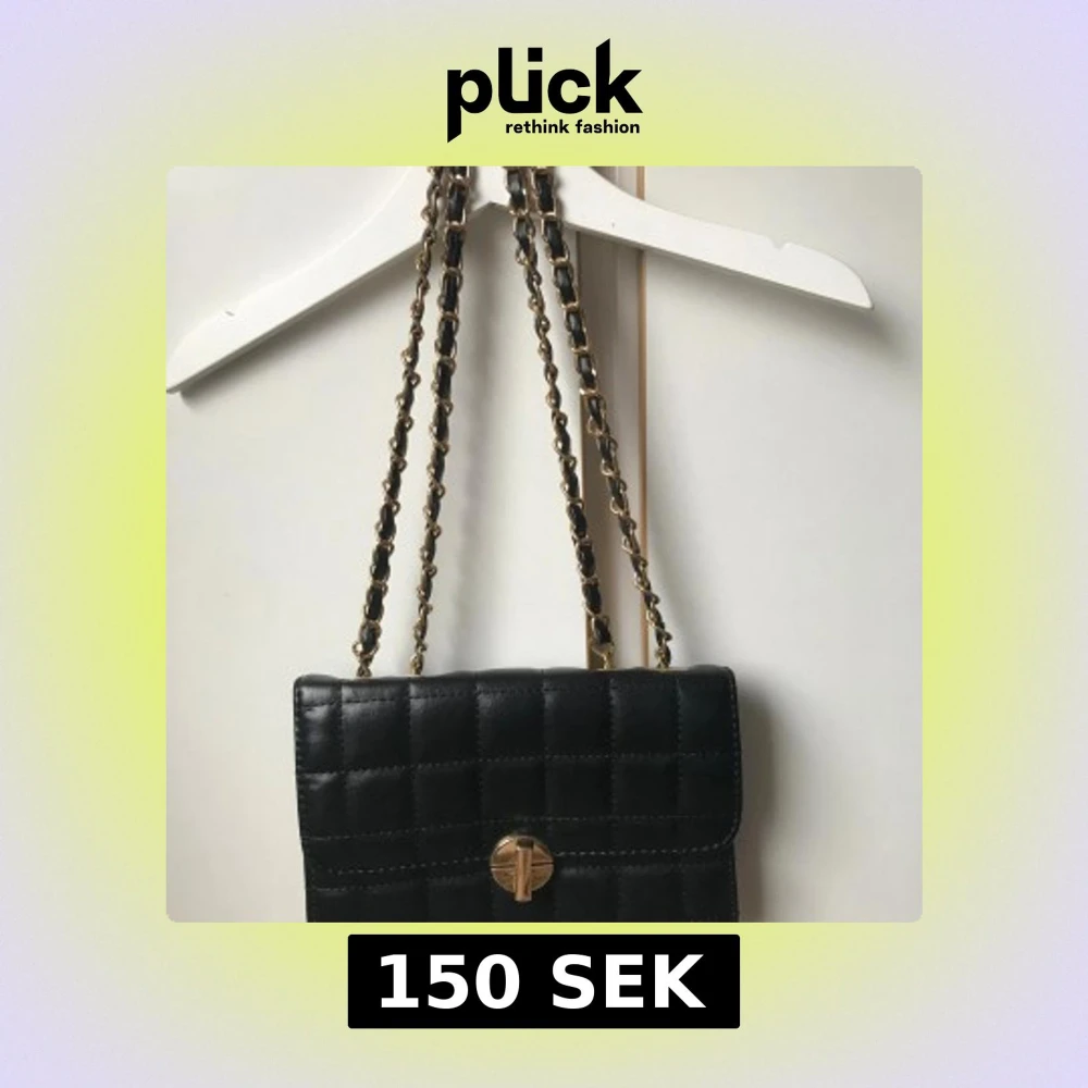 Stilren svart axelväska i quiltat skinn med guldfärgad kedjerem och snyggt vridlås framtill. Klassisk rektangulär form och elegant rutmönster. Perfekt för dig som vill ha en tidlös och trendig accessoar.
