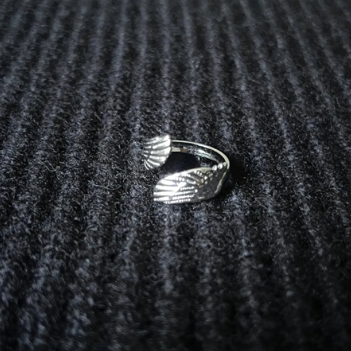 Justerbar ring i stainless steel, rost- och nickelfri. Två stiliserade vingar möts i en svepande form - distinkt detalj med elegans och närvaro.
