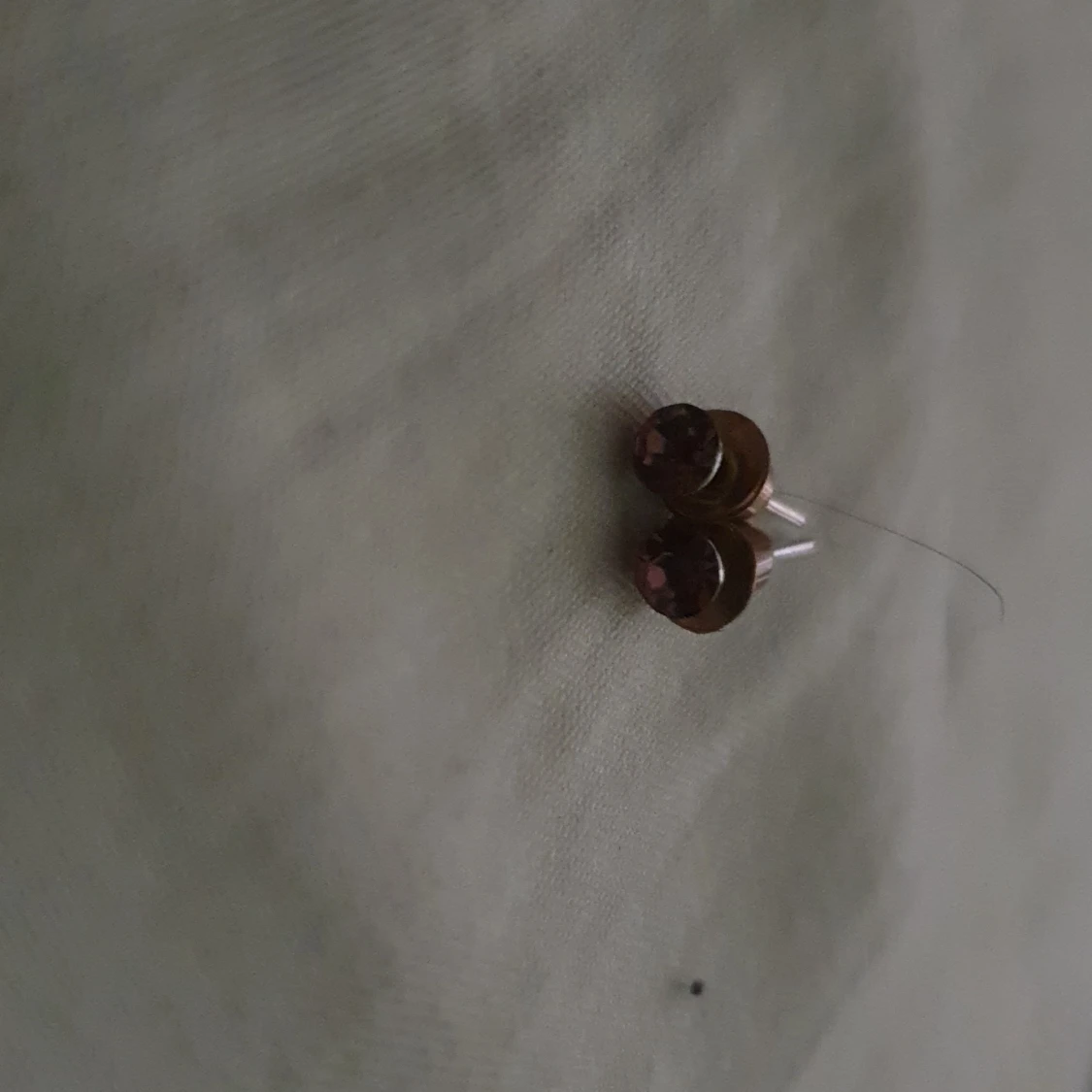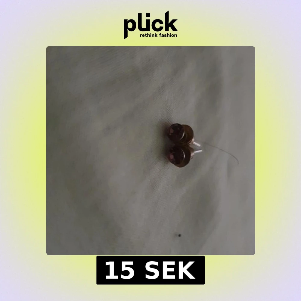 Säljer ett par små, runda örhängen i guldton med glittrande rosa stenar. Perfekta för dig som gillar enkla men snygga accessoarer. Stiftmodell som är lätta att bära hela dagen.