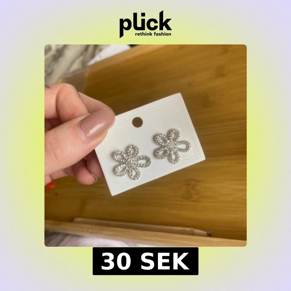Supersöta silvriga örhängen i form av blommor med glittrande stenar. Perfekta för att ge din look lite extra bling och en lekfull touch. Stiftmodell med plastbaksida för bekväm användning. Passar dig som gillar detaljer och vill sticka ut.