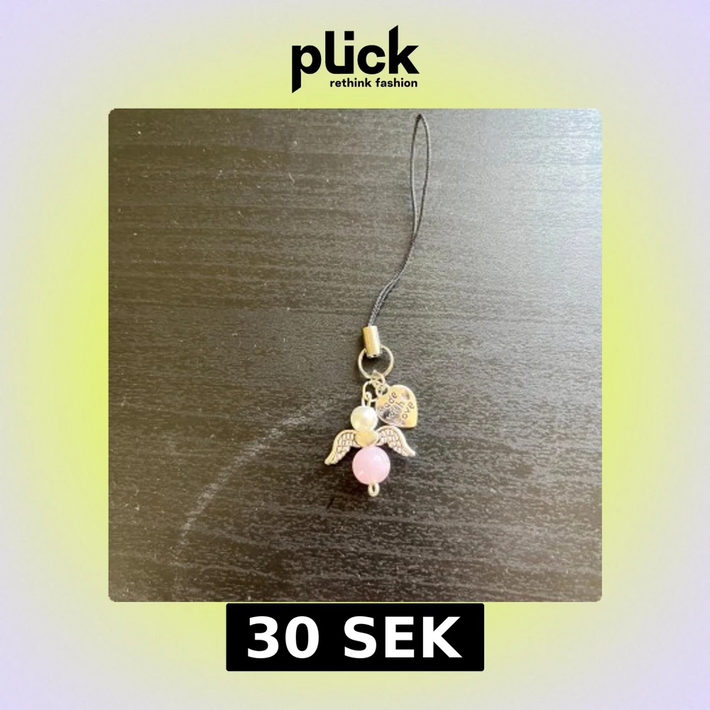 Söt berlock med en ängel gjord av en rosa och en vit pärla, silverfärgade vingar och ett litet hjärta med texten 'made with love'. Perfekt som accessoar till mobilen eller väskan.🩷