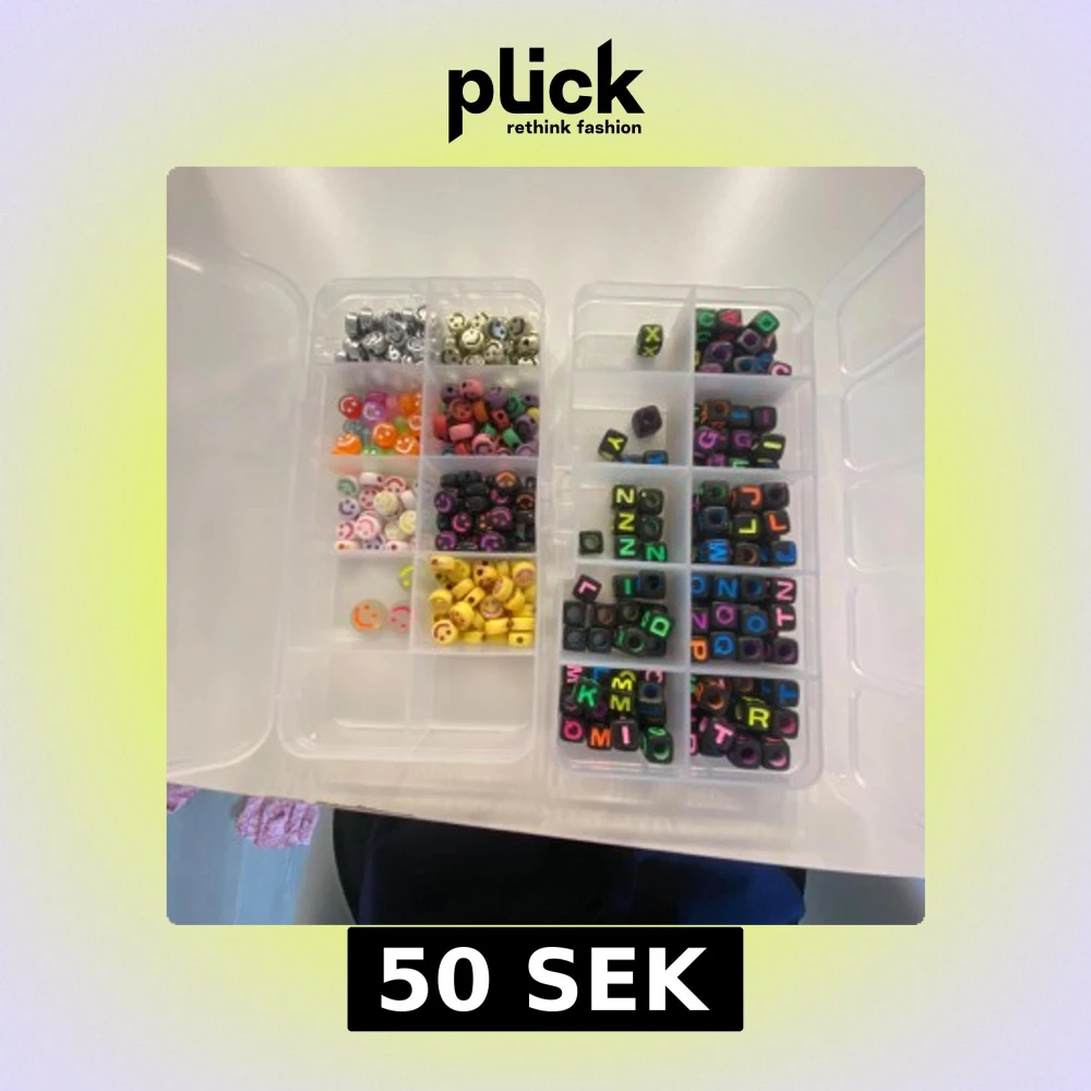Säljer ett pärlkit med färgglada smiley-pärlor i olika färger och metallic, samt svarta kubpärlor med neonfärgade bokstäver. Perfekt för att göra egna armband, halsband eller örhängen!🫶🏻 en box för 30kr båda för 50kr🤍🎀