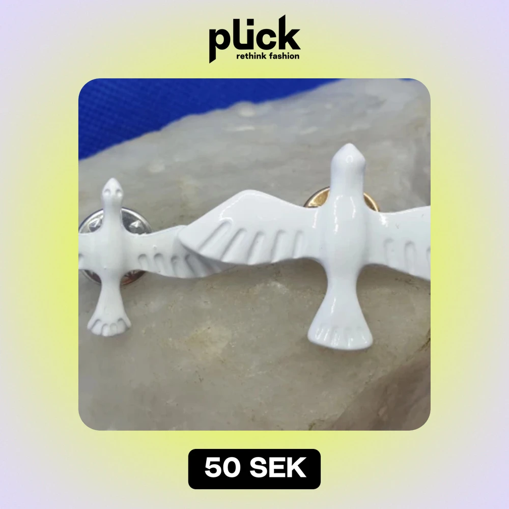 Pins föreställande två fredsduvor. Emaljerad metall, av bra kvalitet.