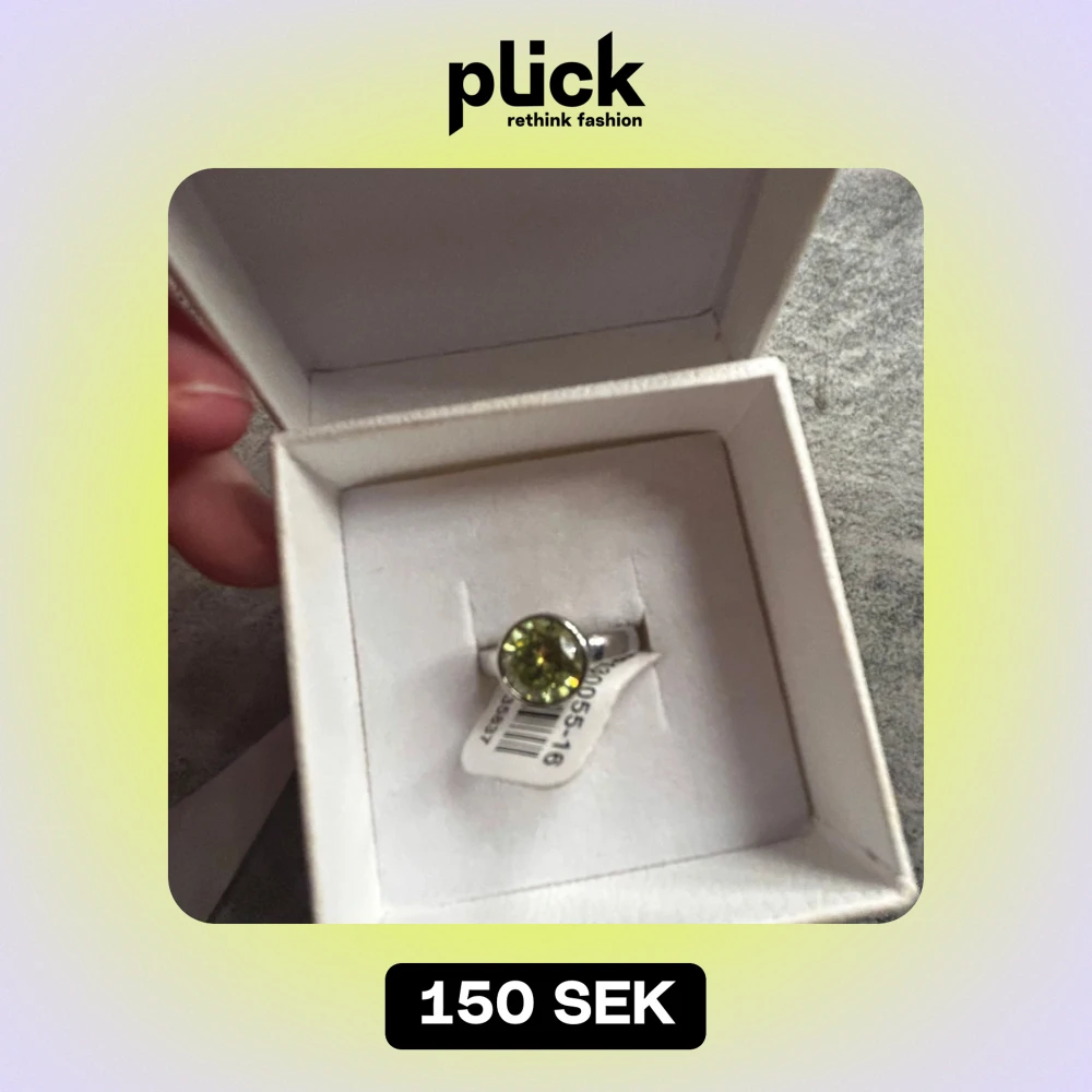 Snygg ring med en stor, rund grön sten i mitten. Tror ringen var i size 16,5 vilket passade inte vig :(💕