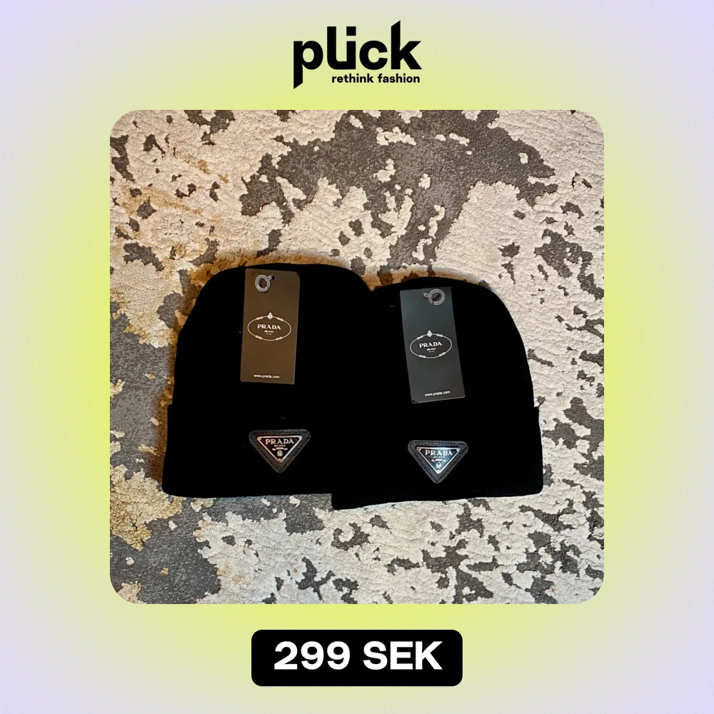Säljer två svarta mössor från Prada. Den är i nytt skick och har en klassisk design med Pradas logo framtill. Perfekt för att hålla sig varm och trendig under de kallare månaderna. Mössan är tillverkad i ett mjukt och bekvämt material. 1 för 299kr och bägge två för 499kr.