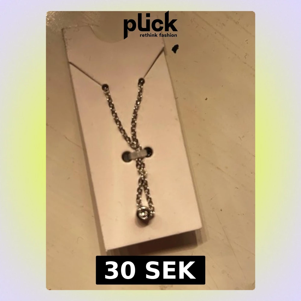 Säljer en unik silverfärgad halsband med en liten rund diamant