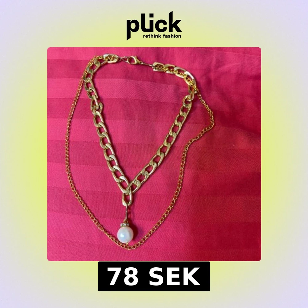 Snyggt halsband i guldton med två kedjor, varav en är kraftigare och den andra tunnare. Halsbandet har ett hänge med en vit pärla och små glittriga detaljer ovanför. Perfekt statement-piece för att lyfta din outfit.