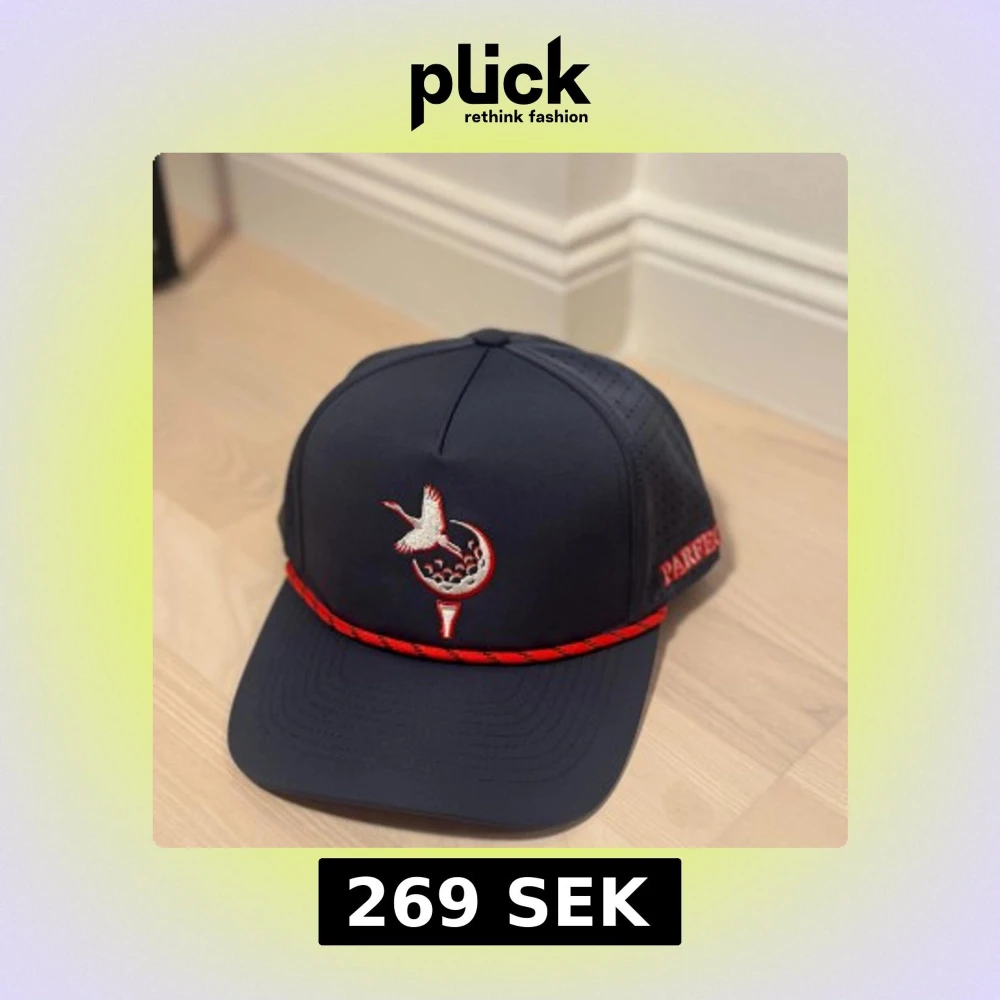 Snygg mörkblå keps från Parfect med röd och vit brodyr framtill som visar en fågel och golfmotiv. Kepsen har perforerade sidor för extra ventilation, justerbar snapback och en röd detalj längs skärmen. Perfekt för golf eller som cool accessoar.