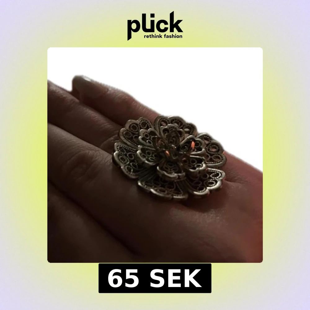 Unik och antik ring i silverfärg med ett detaljerat blommönster. Ringen har en stor, tredimensionell blomma med fina utskurna detaljer som verkligen sticker ut. Perfekt accessoar för dig som vill ha något extra på fingret.