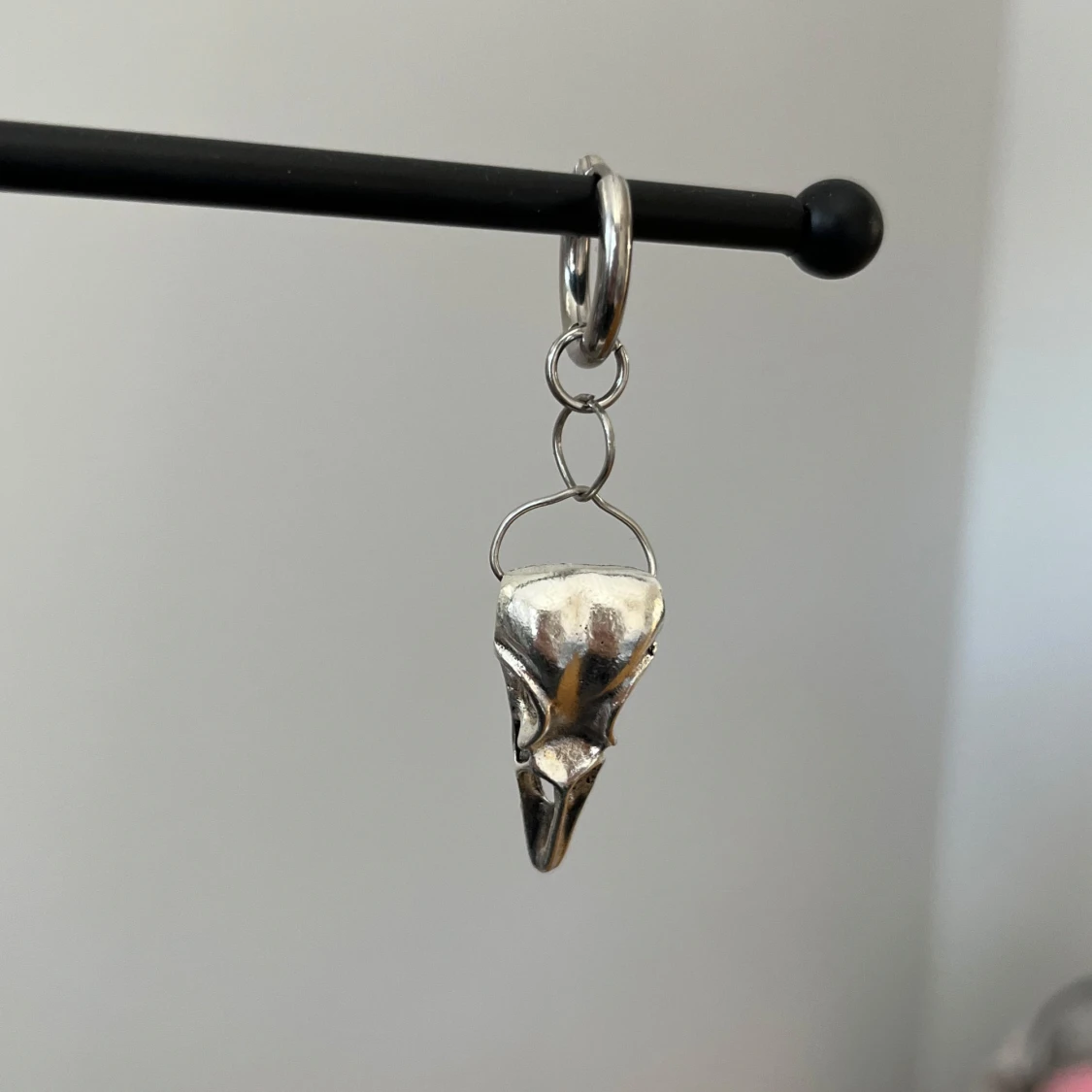 Unikt silverfärgat örhänge format som ett fågelhuvud. Perfekt för att ge en edgy touch till din stil. Örhänget hänger från en enkel ring och har en detaljerad design.