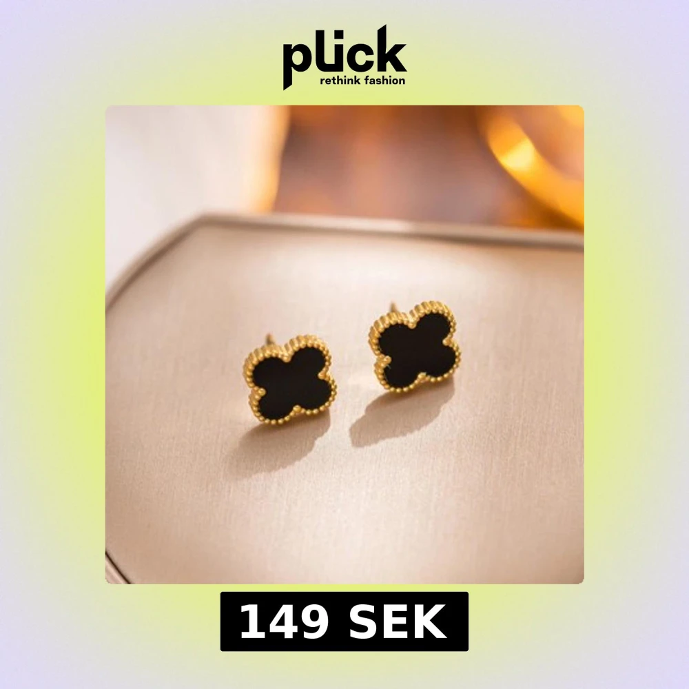 Snygga örhängen i form av en fyrklöver med svart mitt och guldfärgad kant. Perfekta för att ge din look en elegant touch. De har en stilren och modern design som passar till många olika outfits.