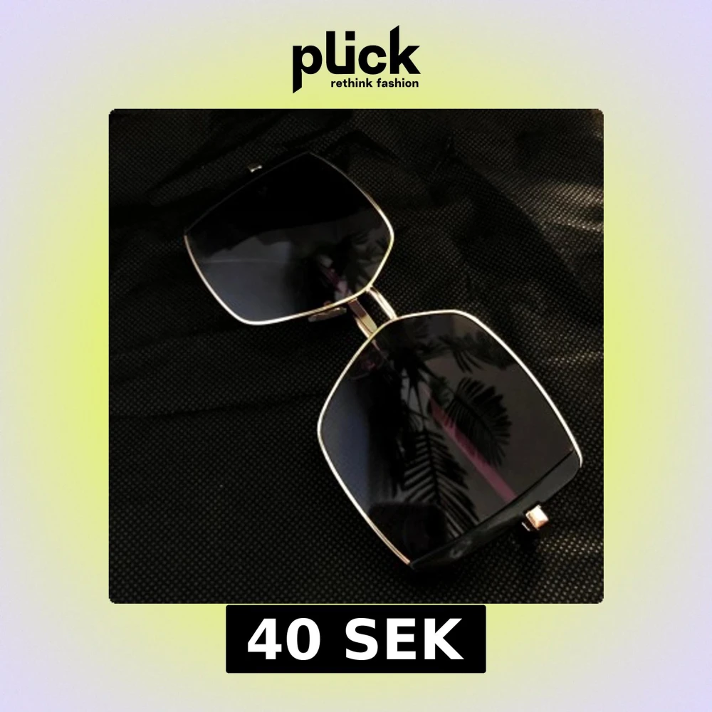 Snygga svarta fyrkantiga solglasögon med tunn guldfärgad metallram. Perfekta för en stilren look med en touch av glamour. De mörka linserna ger ett coolt intryck och skyddar mot solen.