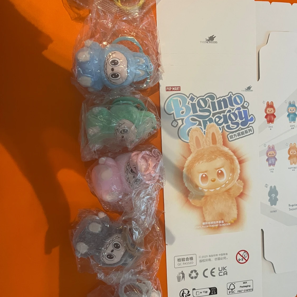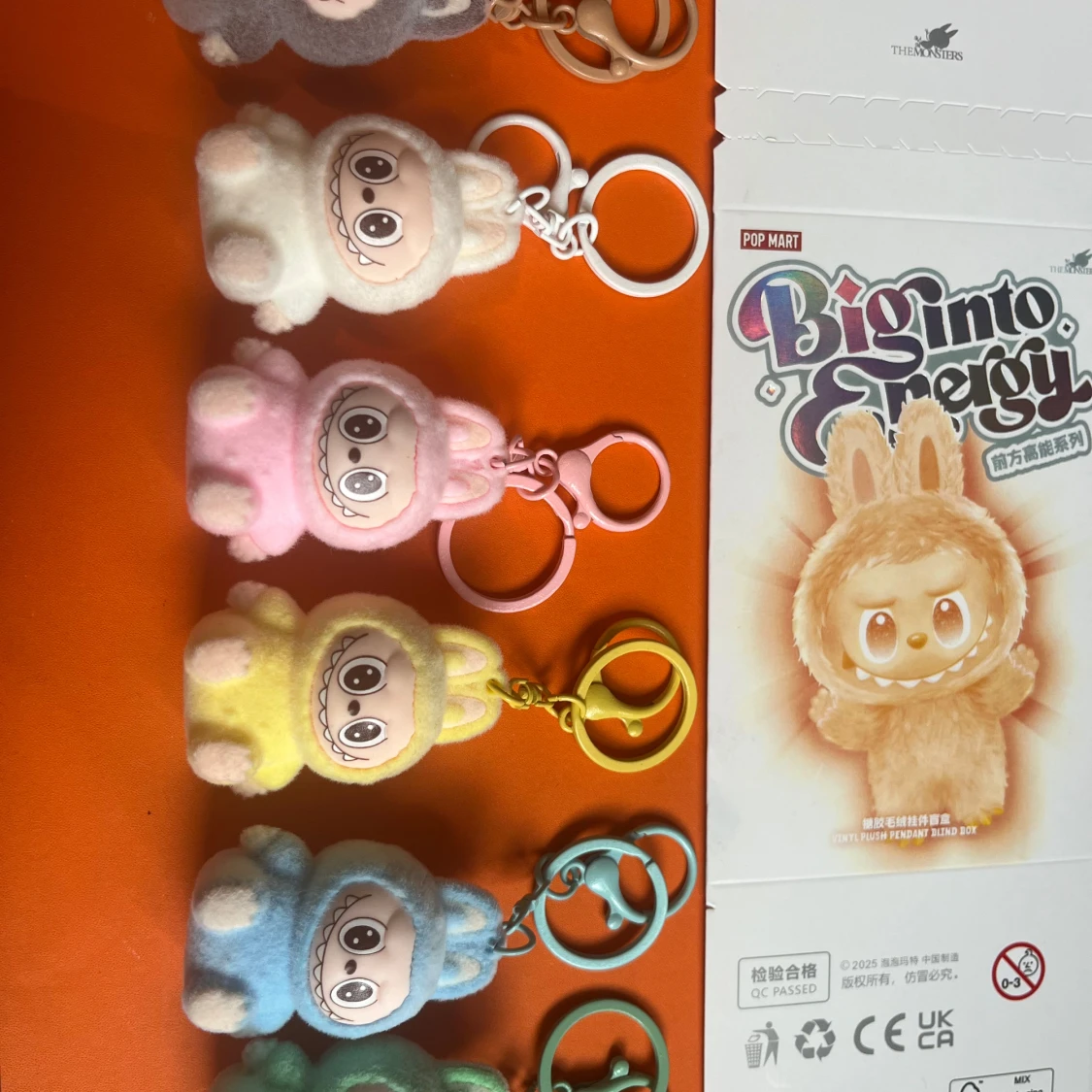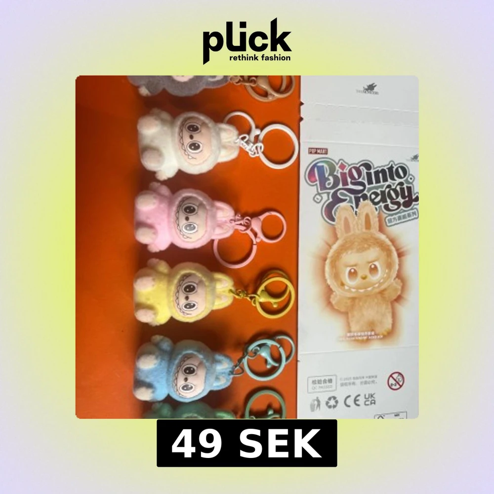 Söt och fluffig nyckelring från Pop Mart Biginto Energy-serien. Figurerna har stora ögon, brett leende och kaninöron. Finns i flera färger: vit, rosa, gul, blå, grön och grå. Perfekt att hänga på väskan eller nyckelknippan för en lekfull touch.
