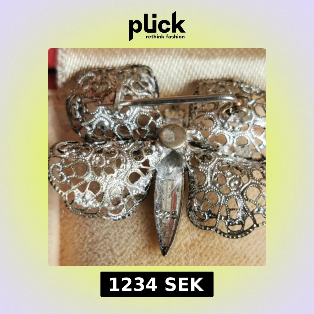 Unik brosch i silverfärgad metall formad som en fjäril med detaljerat filigranmönster på vingarna. Perfekt accessoar för att ge din outfit en elegant touch. Kom med förslag om pris,se bild.