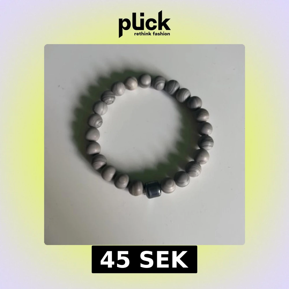 Stilrent armband med runda pärlor i grå toner och marmorerat mönster. En pärla i mörkare grå ger en snygg kontrast. Perfekt accessoar för dig som gillar minimalistisk och modern stil.