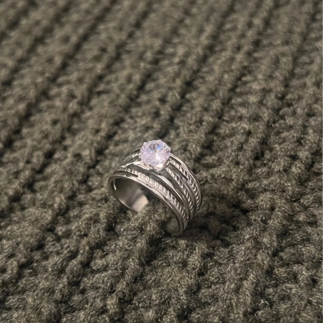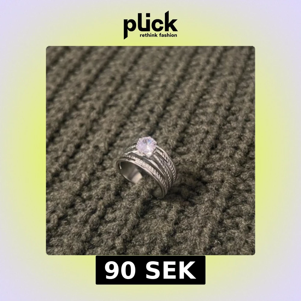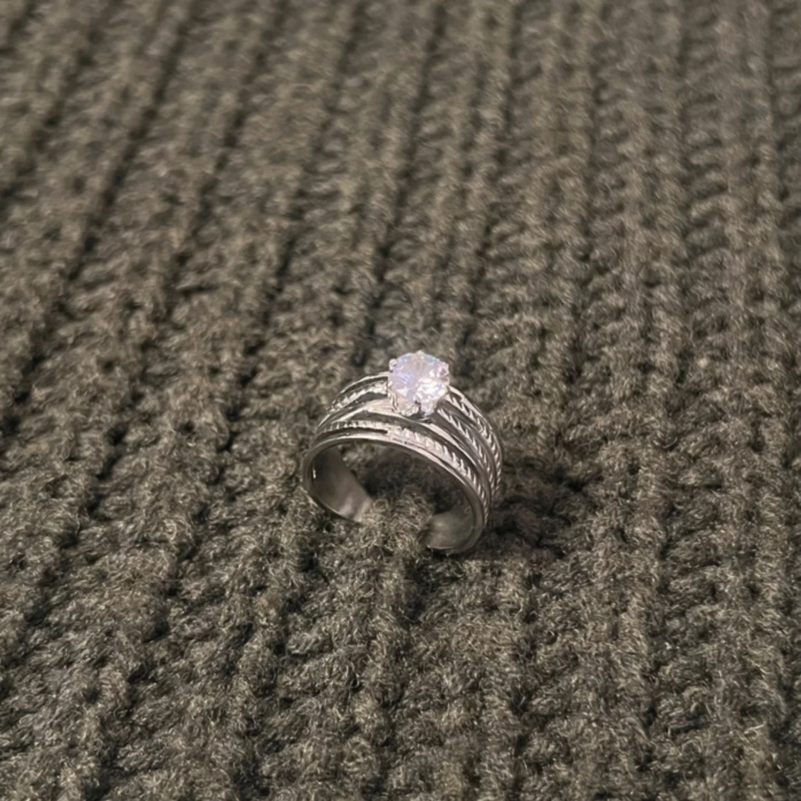 US storlek 7, diameter 17,3 mm, omkrets 54,4 mm. Inspirerad av naturens slingrande rankor. Den gnistrande stenen i mitten reflekterar ljus från alla vinklar, och designen är delvis justerbar för en bekväm passform.