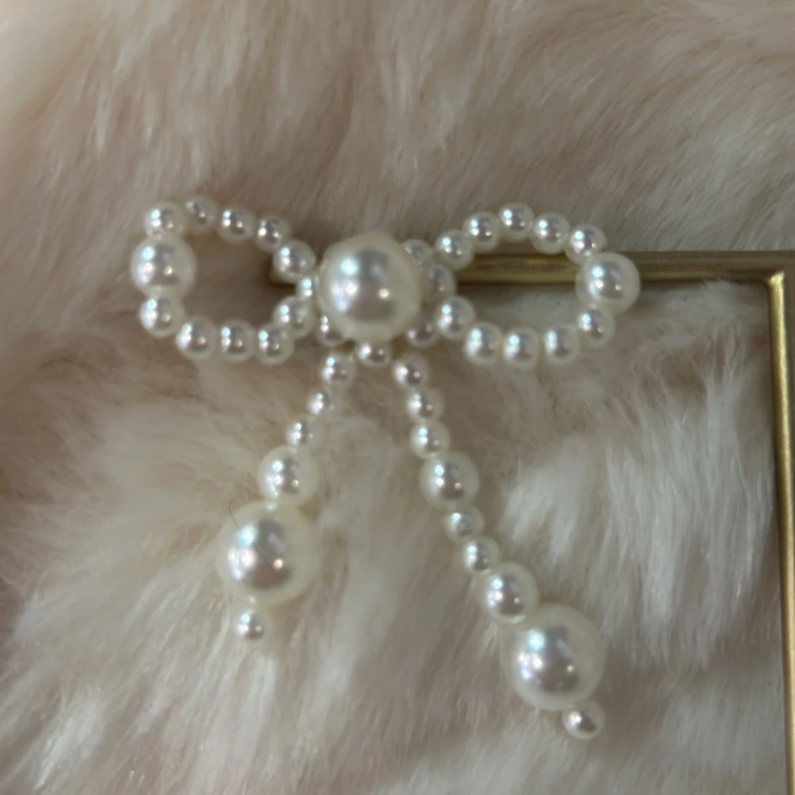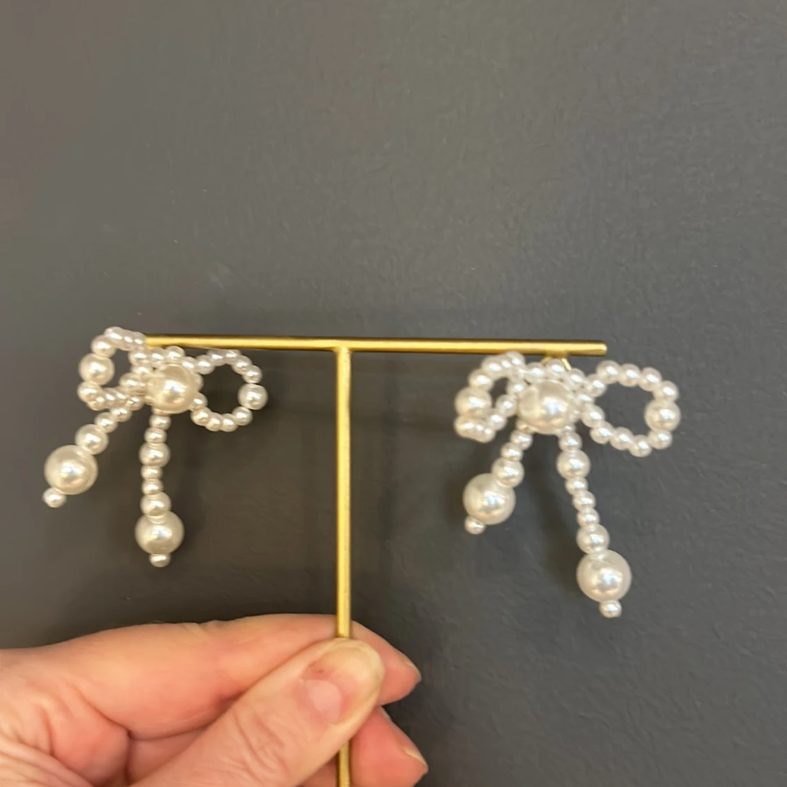 Charmiga örhängen formade som rosetter, dekorerade med vita pärlor. Perfekta för att ge en elegant touch till din outfit. De hänger fint och har en unik design som drar blickarna till sig.