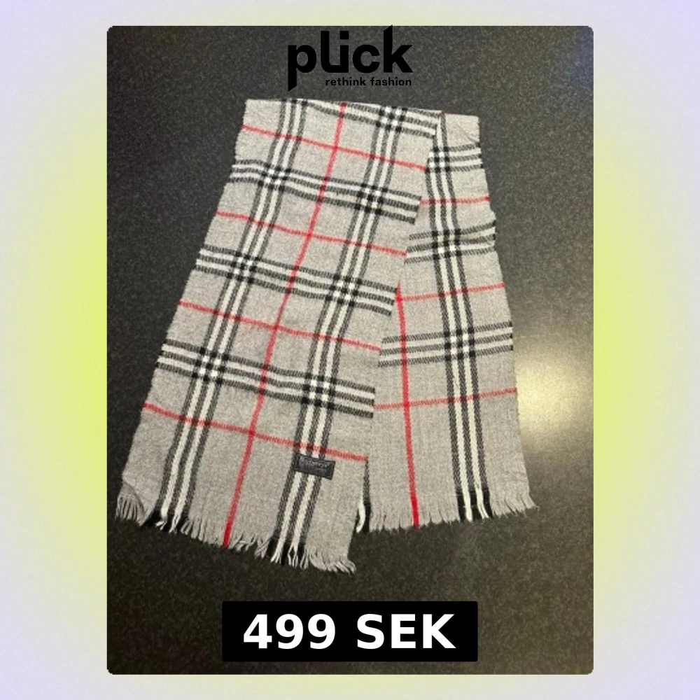 Säljer en grå väst från Burberrys i mjuk kashmir med klassiskt rutigt mönster i svart, vitt och rött. Västen har fransad nederkant och en snygg Burberrys-label. Perfekt för dig som gillar tidlös design och lyxigt material.
