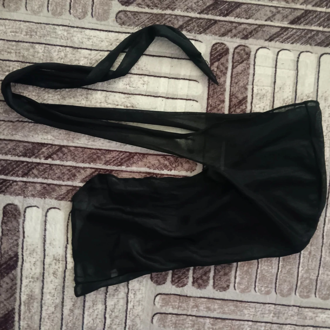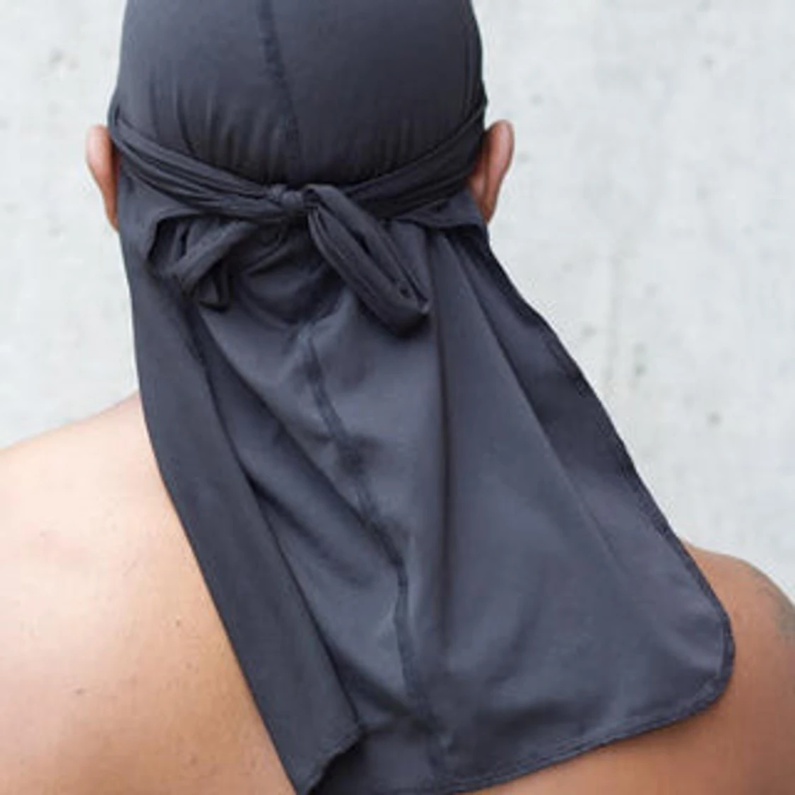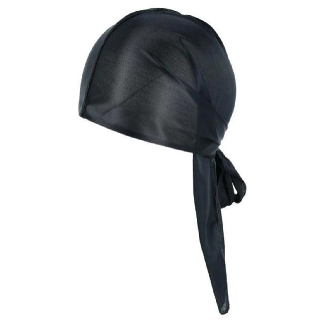 Svart durag i tunn och lätt polyester med långa band för att knyta baktill. Materialet är svalt och andas, perfekt för att hålla frisyren på plats eller som accessoar. Klassisk design med slät yta och enkel stil.