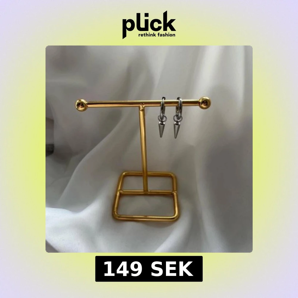 Säljer ett par coola silvriga örhängen med små spike-hängen. De har en minimalistisk och edgy design som passar perfekt för dig som gillar att sticka ut. Örhängena är i metall och har en enkel ring med en spetsig detalj som hänger ner.