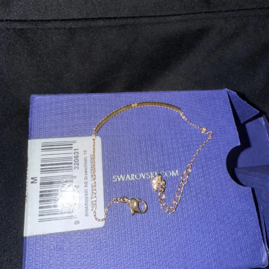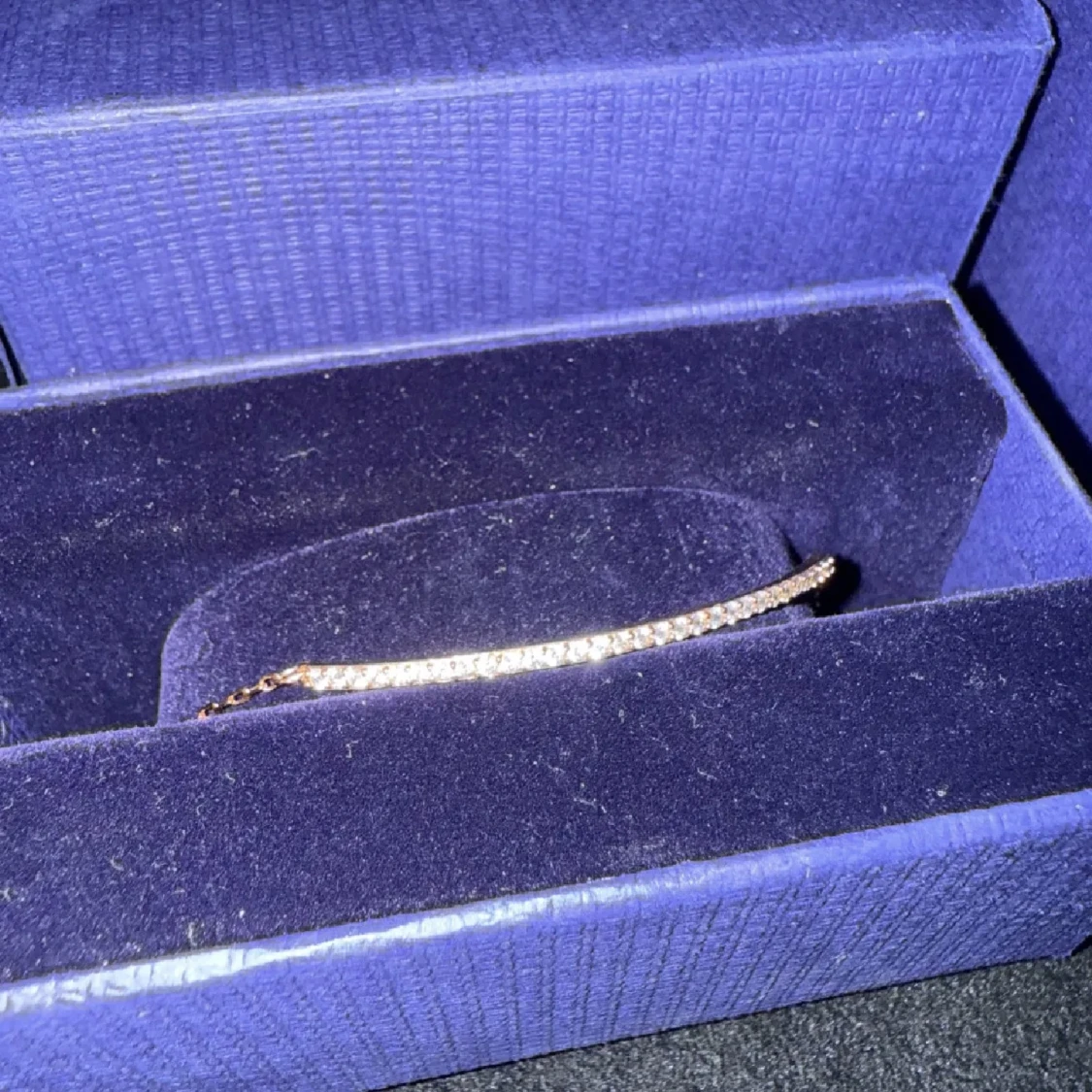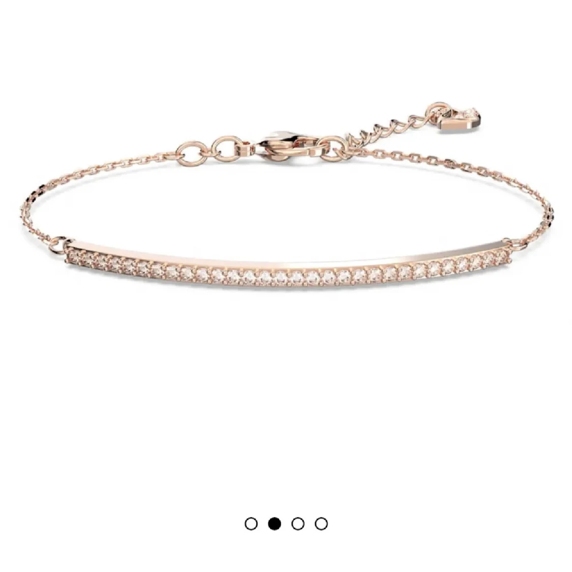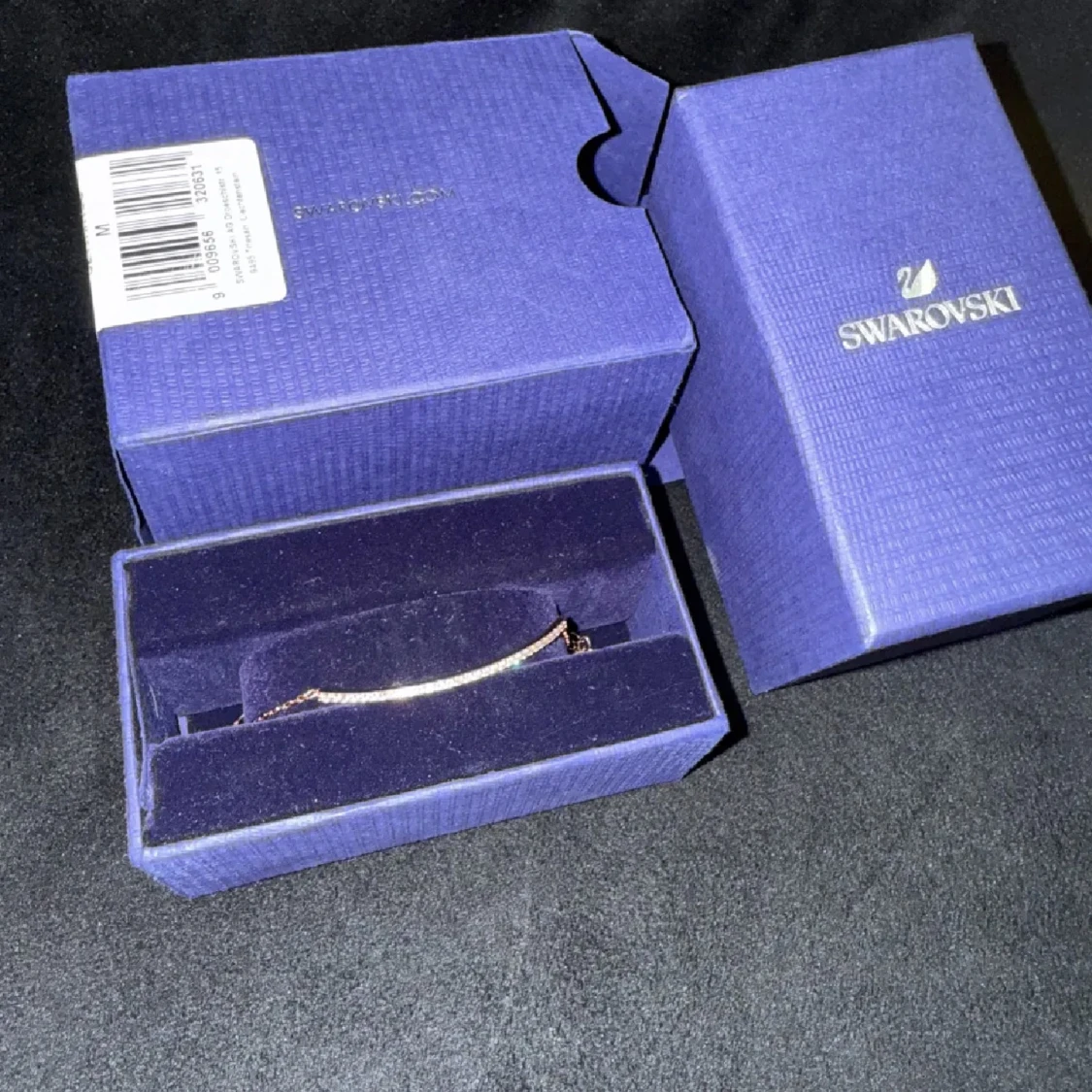 Supersnyggt armband från Swarovski i roséguld med en tunn kedja och en rak stav dekorerad med gnistrande kristaller. Perfekt för dig som gillar stilrena och glittriga smycken. Levereras i originalask. Vid köp av två eller fler får du dessutom välja en present 🎁❤️ (presenterna kan jag visa i DM eftersom de inte finns upplagda här).