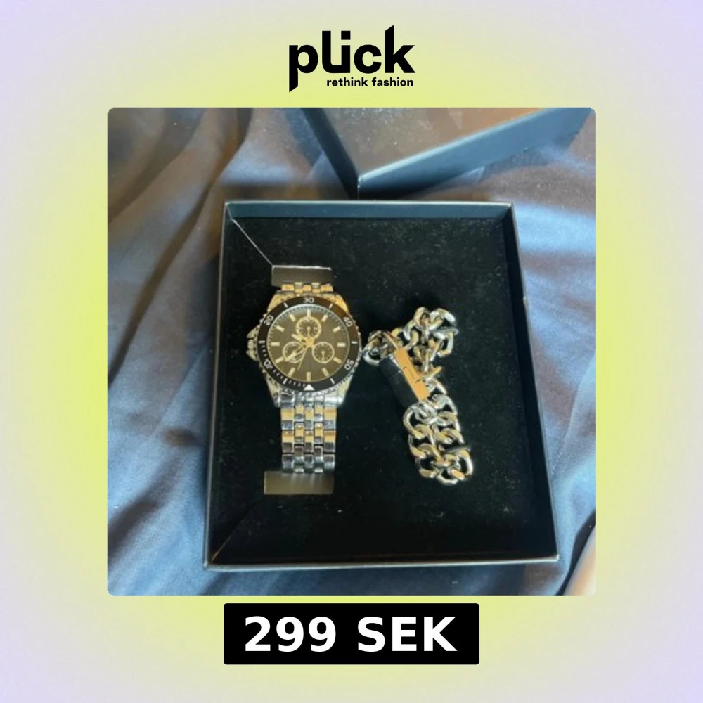 Stilren klocka från Pier One med svart urtavla och silverfärgad länk i metall. Klockan har flera små urtavlor och tydliga siffror runt boetten. Levereras i originalask tillsammans med en matchande silverfärgad länkarmband.