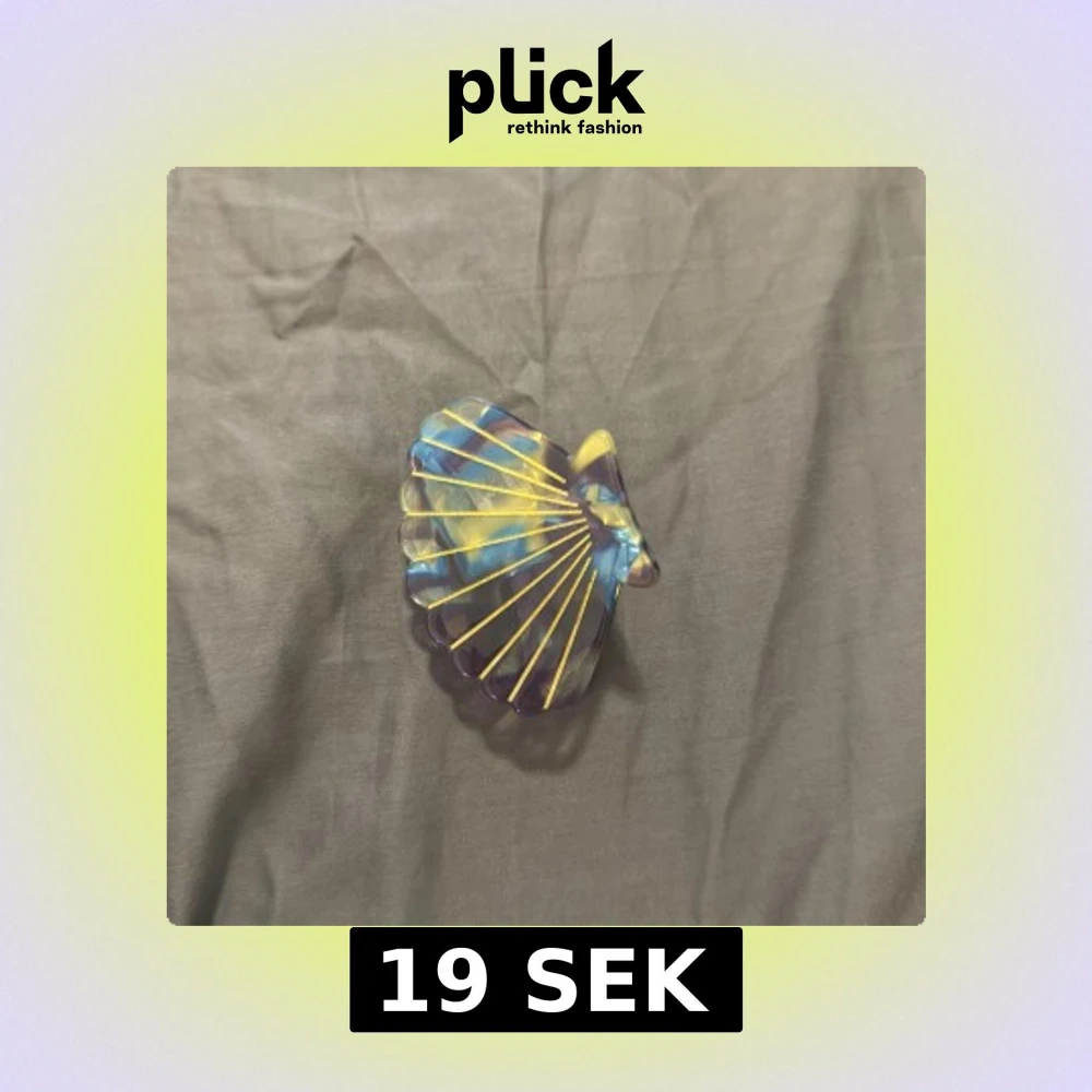 Snygg snäckformad hårklämma i blått och gult med guldfärgade linjer. Perfekt för att ge en färgglad touch till din frisyr. Aldrig använd!!